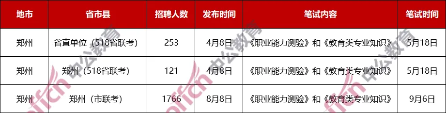 分析近几年公告,郑州地区一般是4—7月份出公告,考试时间集中在6—8月份,从2025年招聘改革,
