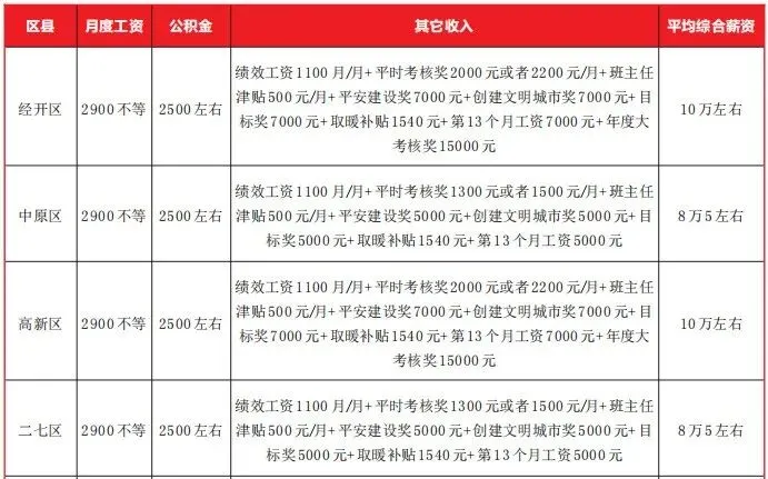 以下为郑州市部分教师薪资待遇(仅供参考):
