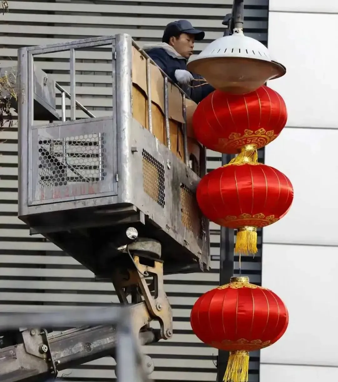 作为本次新春亮化的核心,红灯笼安装工作于2月1日正式启动,12名施工人员分为2组,配备2台高空作业车同步推进,高效保安装进度。本次悬挂灯笼聚焦中华路与文峰大道两条城市主干道,文峰大道采用高低错落式安装,中华路则以平行安装为主,红绸摇曳间尽显传统年味。
