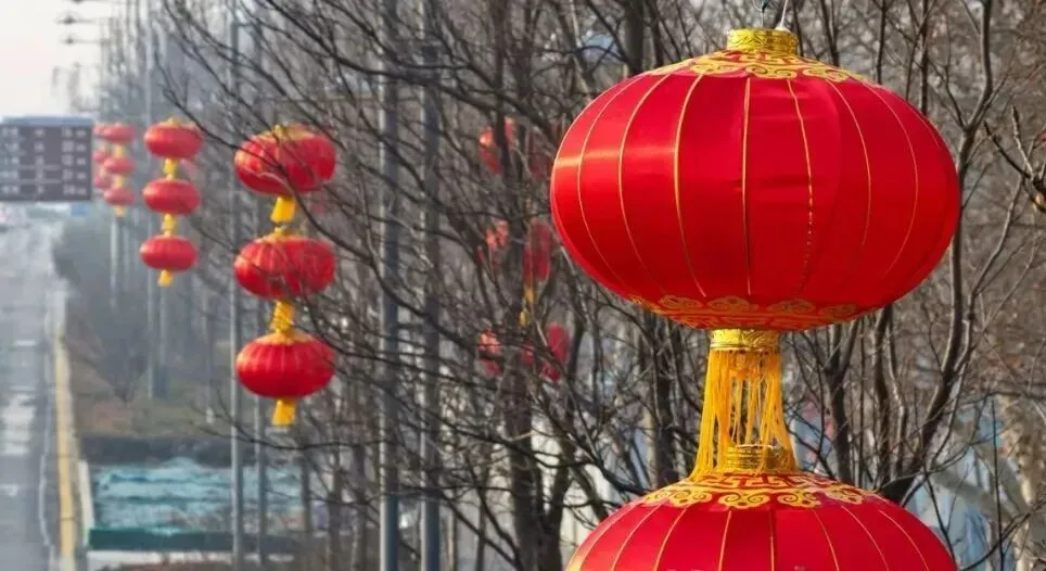 主干道灯笼高悬,红火氛围贯穿全城