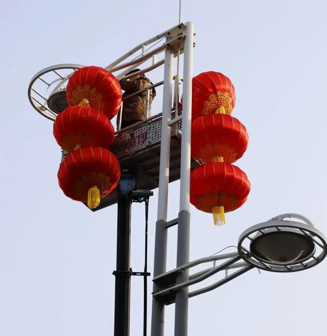除主干道灯笼布置外,迎宾公园南北广场及北高速口的特色挂件也陆续开始安装,为城市关键节点注入鲜活年味。