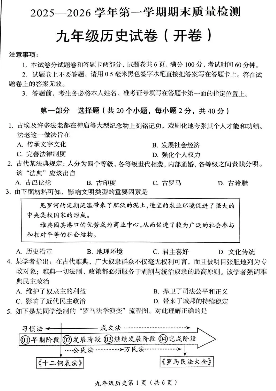 洛阳市2025-2026学年九上期末历史试卷及答案.pdf