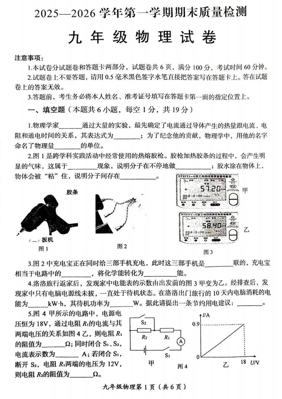 洛阳市2025-2026学年九上期末物理试卷及答案.pdf