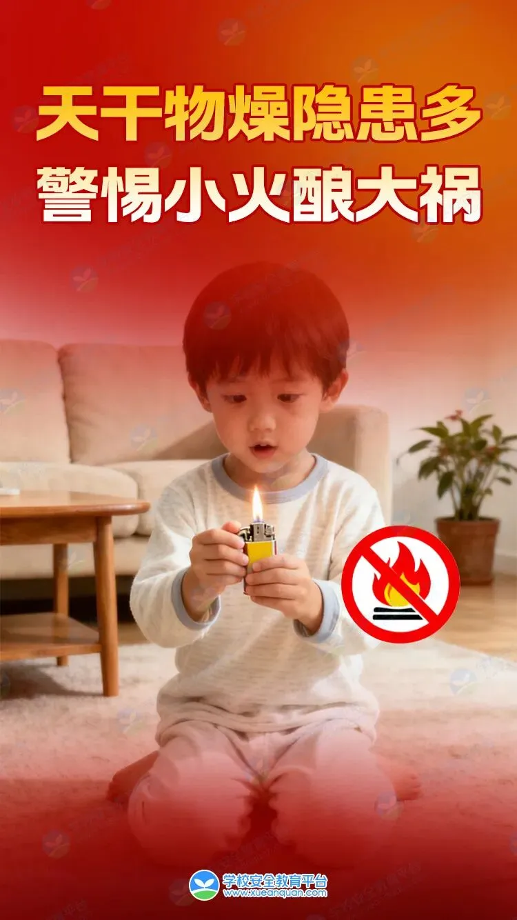 2.向孩子普及火灾隐患知识,明确禁止玩火;妥善保管火柴、打火机等易燃易爆物品,不让孩子接触。