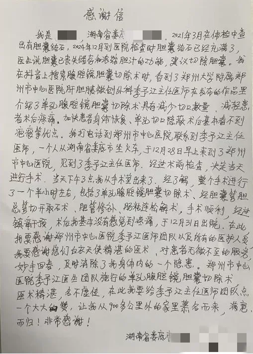 在北京积水潭医院郑州医院(郑州市中心医院)肝胆胰微创外科,这项技术已实现常态化开展,帮助众多患者以近乎隐痕的方式重获健康。