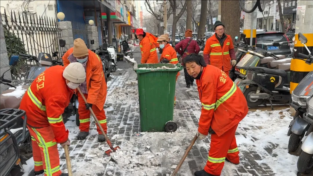 在大多数人还依偎在温暖被窝的清晨,一抹抹橙色身影早已出现在街头巷尾——他们手持扫帚、铁锹,清理着路面积雪与薄冰,为这座城市的畅通与安全默默坚守。