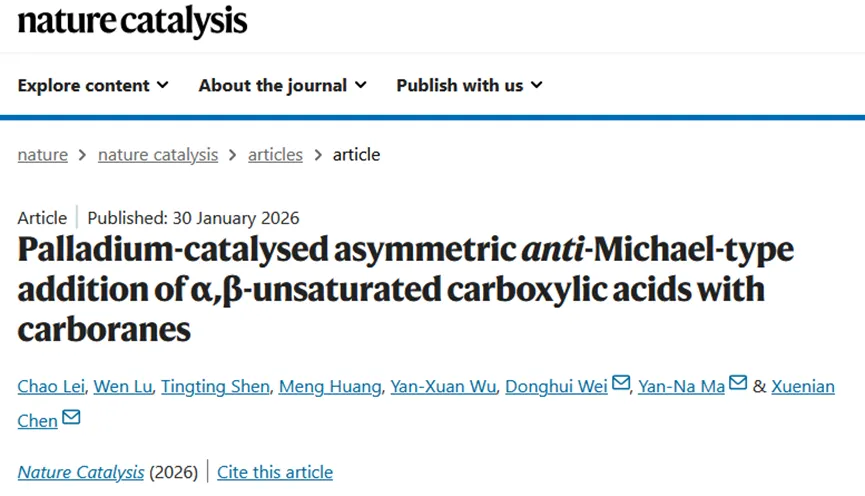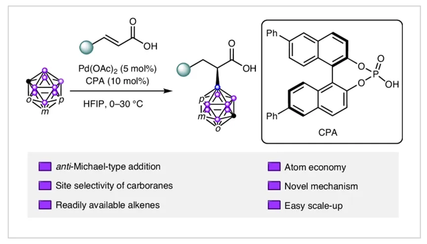 Lei, C., Lu, W., Shen, T. et al. Palladium-catalysed asymmetric anti-Michael-type addition of α,β-unsaturated carboxylic acids with carboranes. Nat. Catal.(2026).