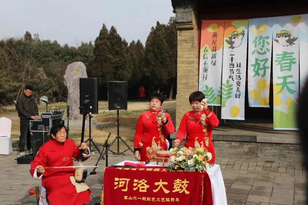 上午10时,活动开幕式在观星台景区正式拉开帷幕。郑州市文化广电和旅游局领导在致辞中指出,二十四节气作为人类非物质文化遗产,是中华优秀传统文化的重要载体,而观星台作为二十四节气发祥地,承载着“昼参日影,夜观极星”的千年智慧,此次活动正是立足这一文化根脉,推动节气文化活态传承的生动实践。登封市相关领导在推介中强调,登封“天地之中”历史建筑群是世界文化遗产,观星台作为其中核心组成部分,见证了元代郭守敬修订《授时历》的辉煌成就,此次立春文化日活动将进一步激活文化遗产价值,助力文旅融合高质量发展。开幕式上,激昂顿挫的河洛大鼓表演赢得阵阵掌声,古朴的唱腔与春日的生机相映成趣,拉开了全天活动的序幕。