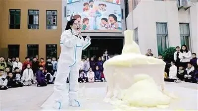 语文在表达与创造里涵养文化底气。书法作品的一笔一画是与千年文化的对话和对汉字之美的感知与传承。“我是演讲小达人”分享自己的故事,课本剧让静态的文字变成鲜活的场景,孩子们在角色中理解故事,在协作中学会沟通。数学在丈量与思辨中,练就思维韧性。“测量小能手”用“一步”“一拃”这些身体上的尺子去丈量教室的长度、课桌的宽度,体会到“数学源于生活”。“校园推荐官”用方位知识为访客指引路线,空间思维变成解决问题的工具。“解决问题小能手”在分析推理中,调动加减乘除解决重叠等生活常识。英语在唱演与认读间,孩子们的“演一演”“唱一唱”把绘本里的故事、单元里的歌曲变成了生动表演。准确的发音、自信的回应都是打开世界窗口的钥匙。科学在观察与探究中,种下好奇的种子。“特岗动物推荐官”“快递员”“救生员”锻炼逻辑思考与表达能力,“天气与生活”的分享细数雨天对蚂蚁搬家的影响、晴天对植物生长的作用,而“生活中的溶解”里清晰说出食盐能溶解、沙子很难溶解、面粉会部分溶解。