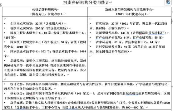目前,河南省共有核心科研机构总数约6000家以上(含各级技术中心、工程中心,等等),如果仅计独立法人科研院所和新型研发机构,则约有300~500家,呈现“老新并举”的格局,管理上也基本上以“政府主导、财政支持、事业编制”的模式为主导。