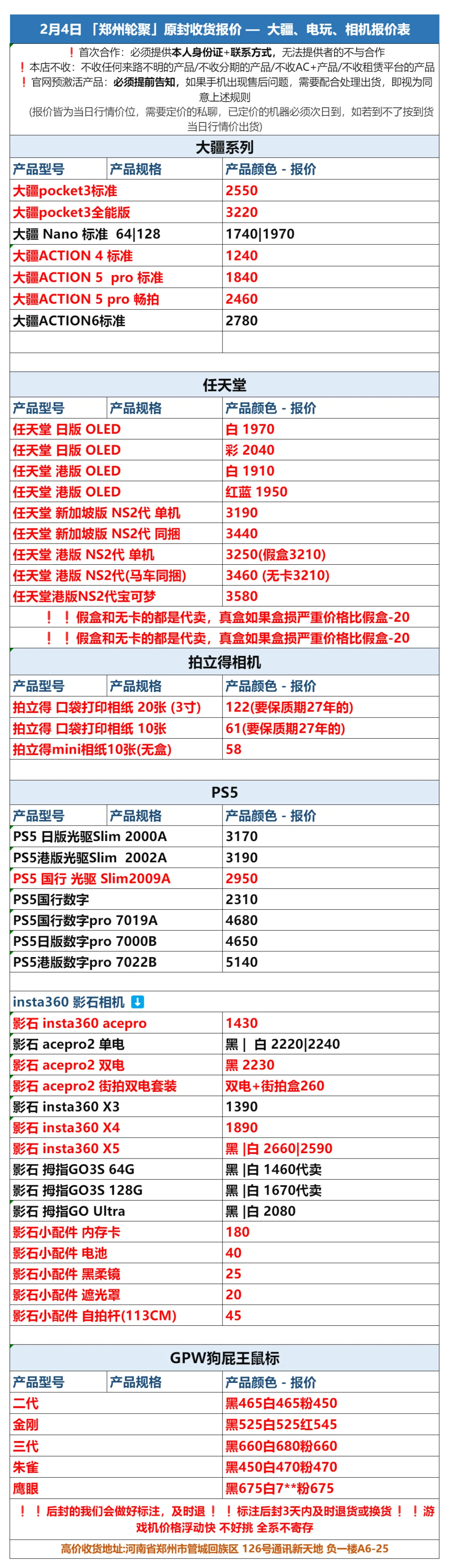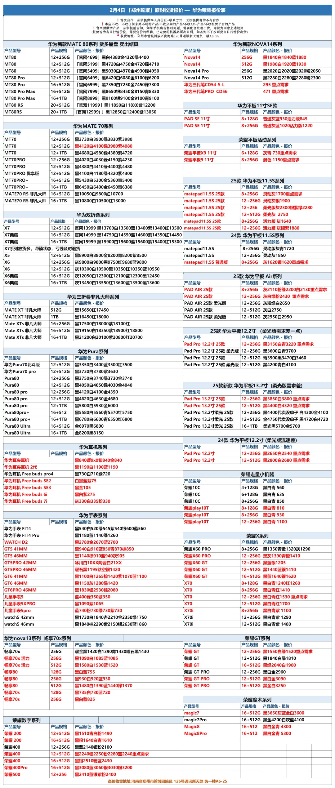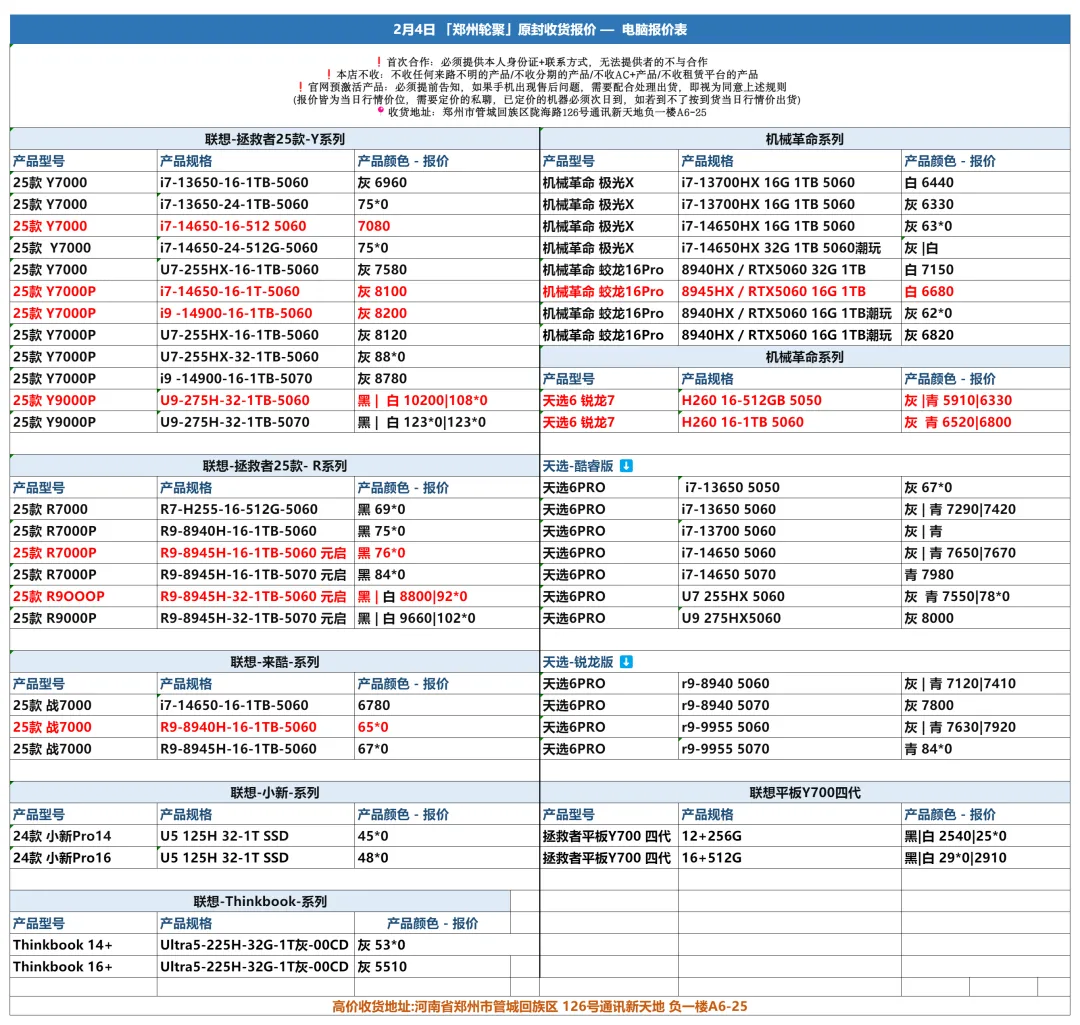 郑州轮聚通讯 2026年2.4日数码报价更新