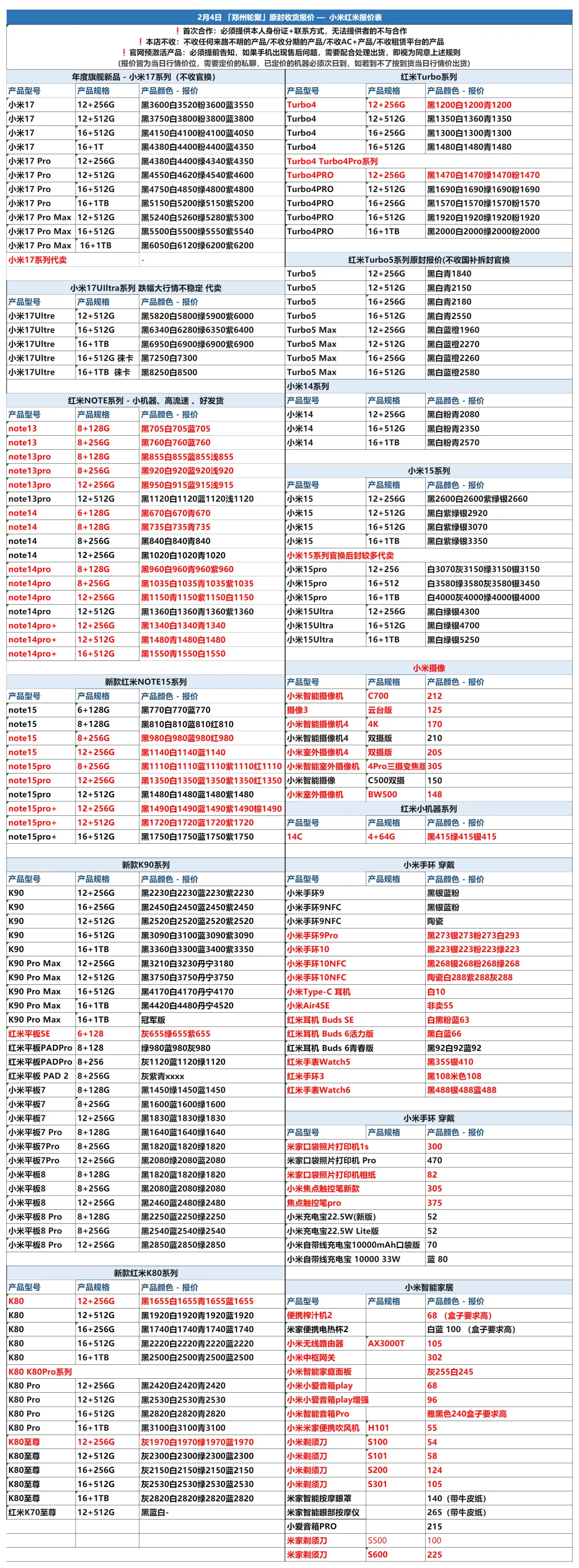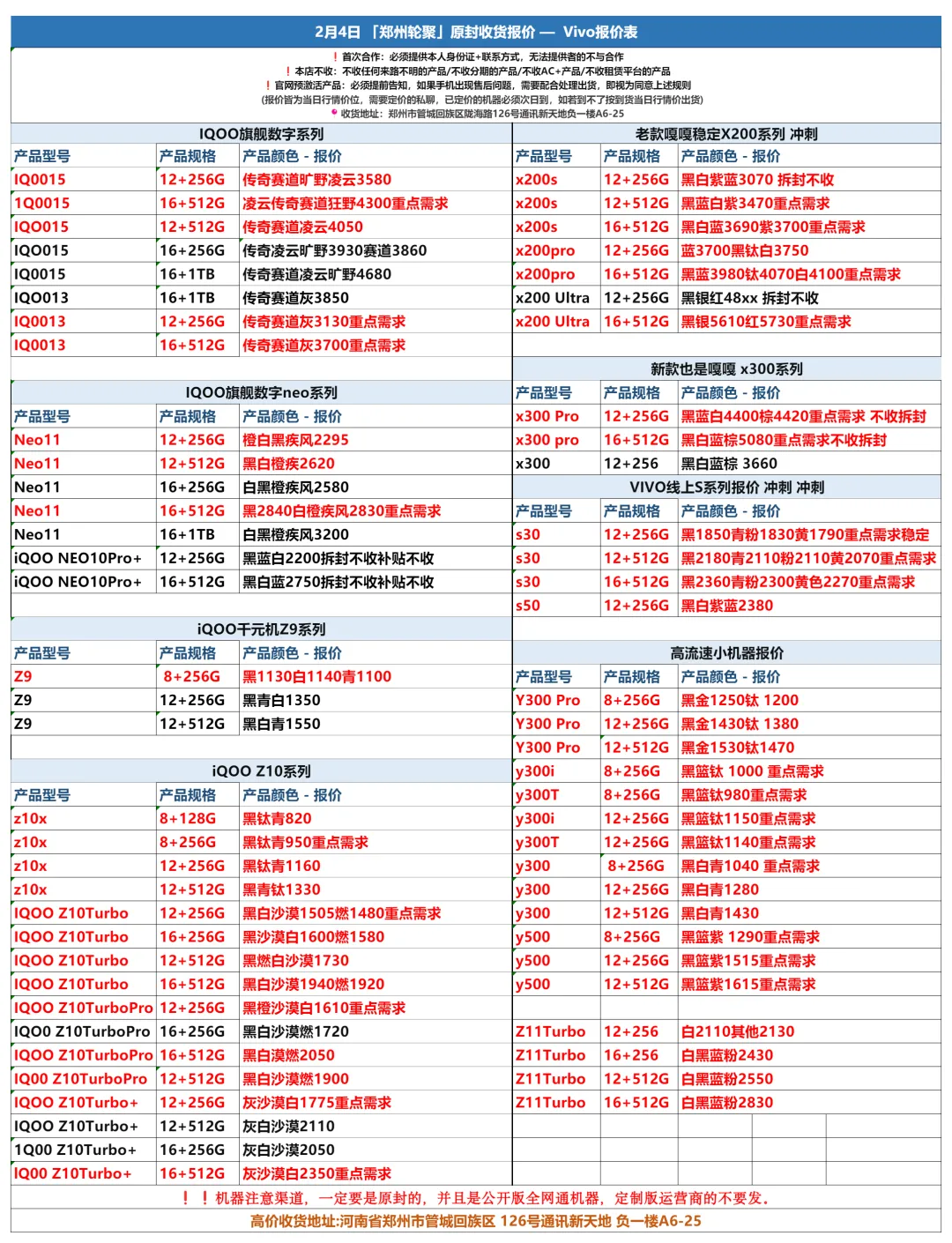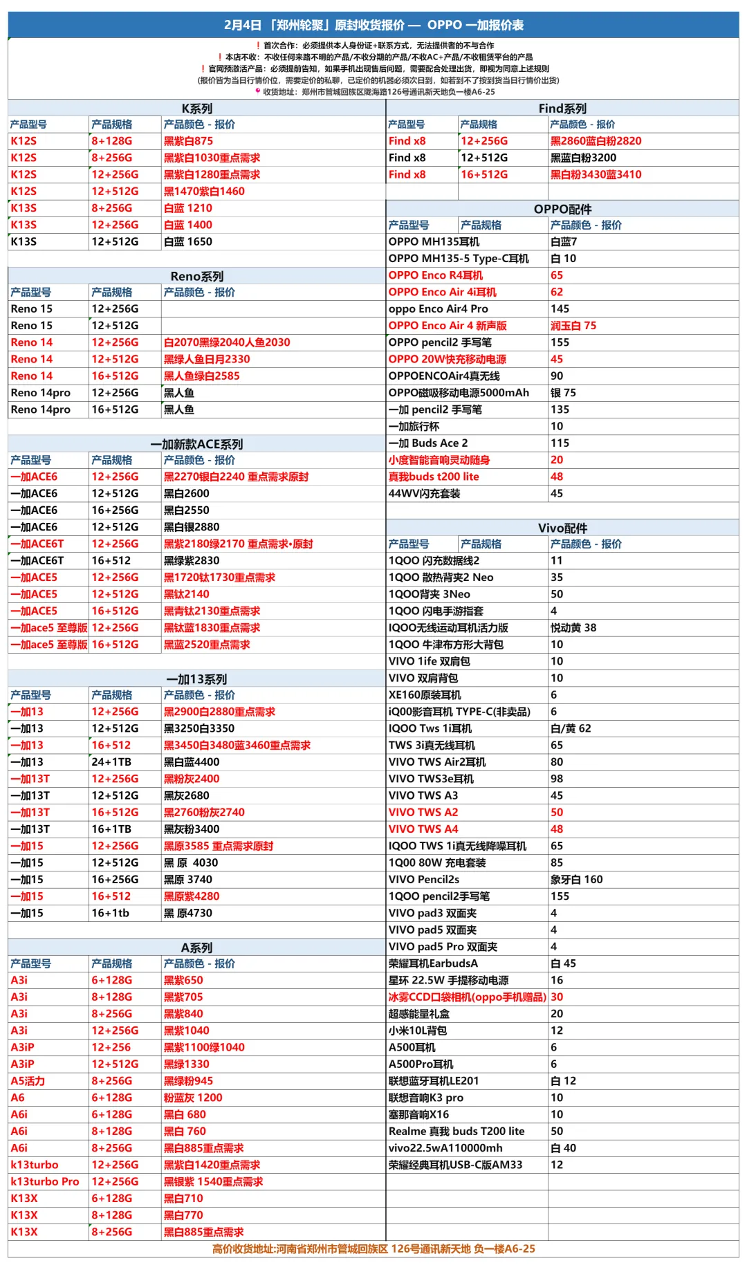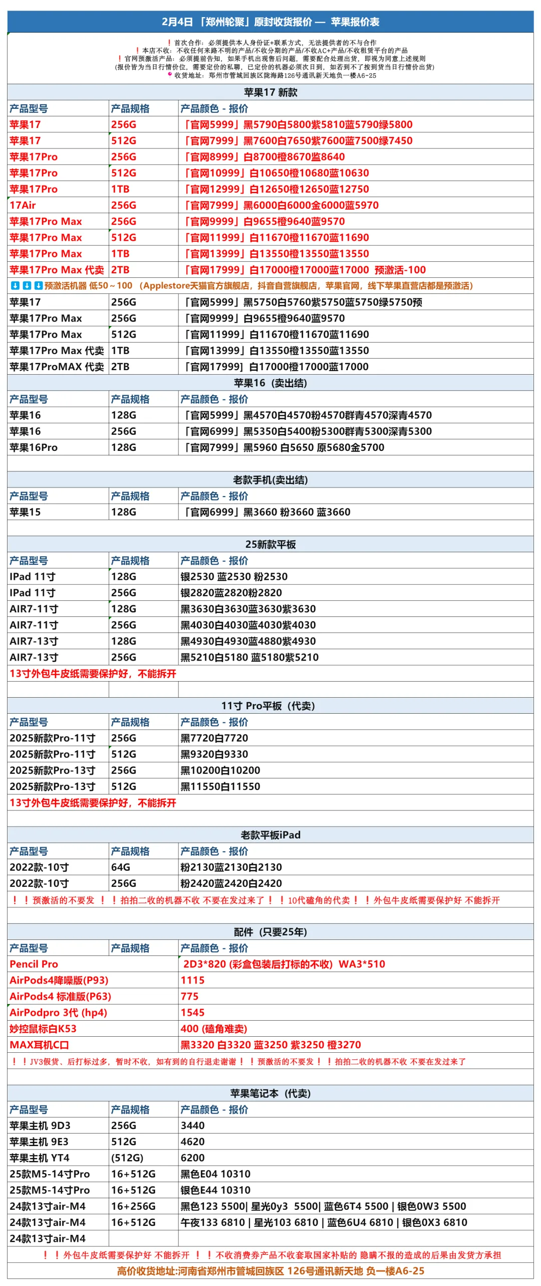 >郑州轮聚通讯 2026年2.4日数码报价更新