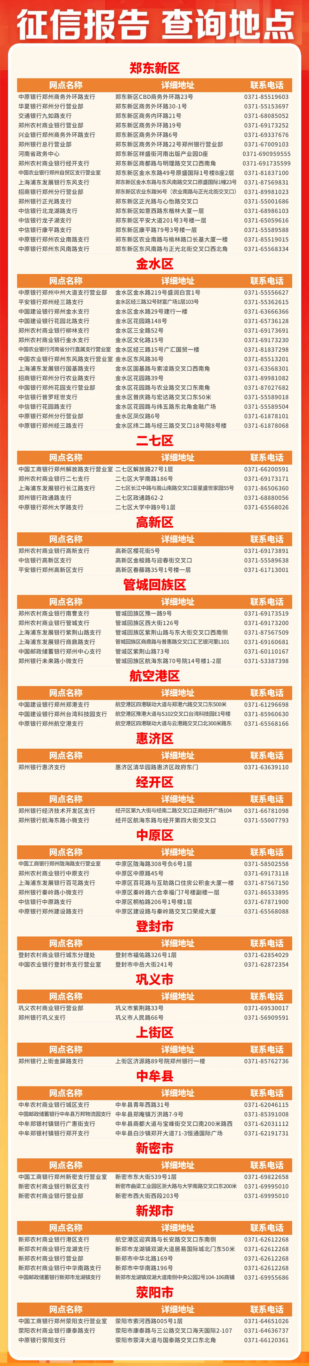 郑州市全域征信报告打印地点汇总