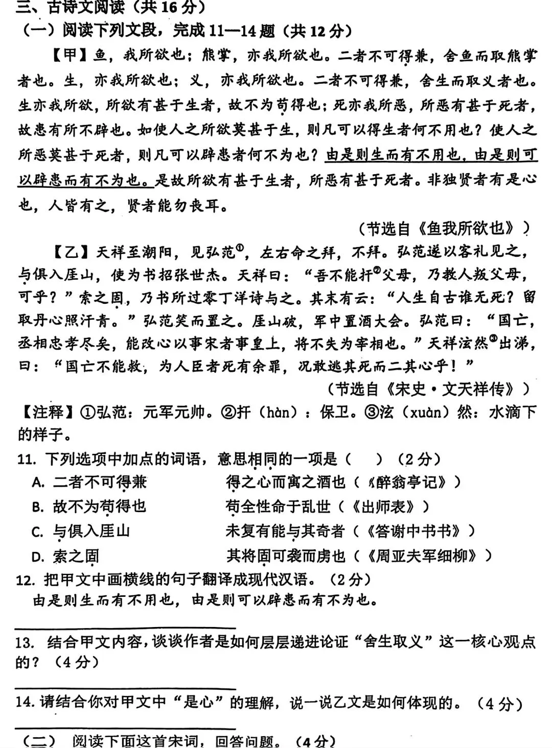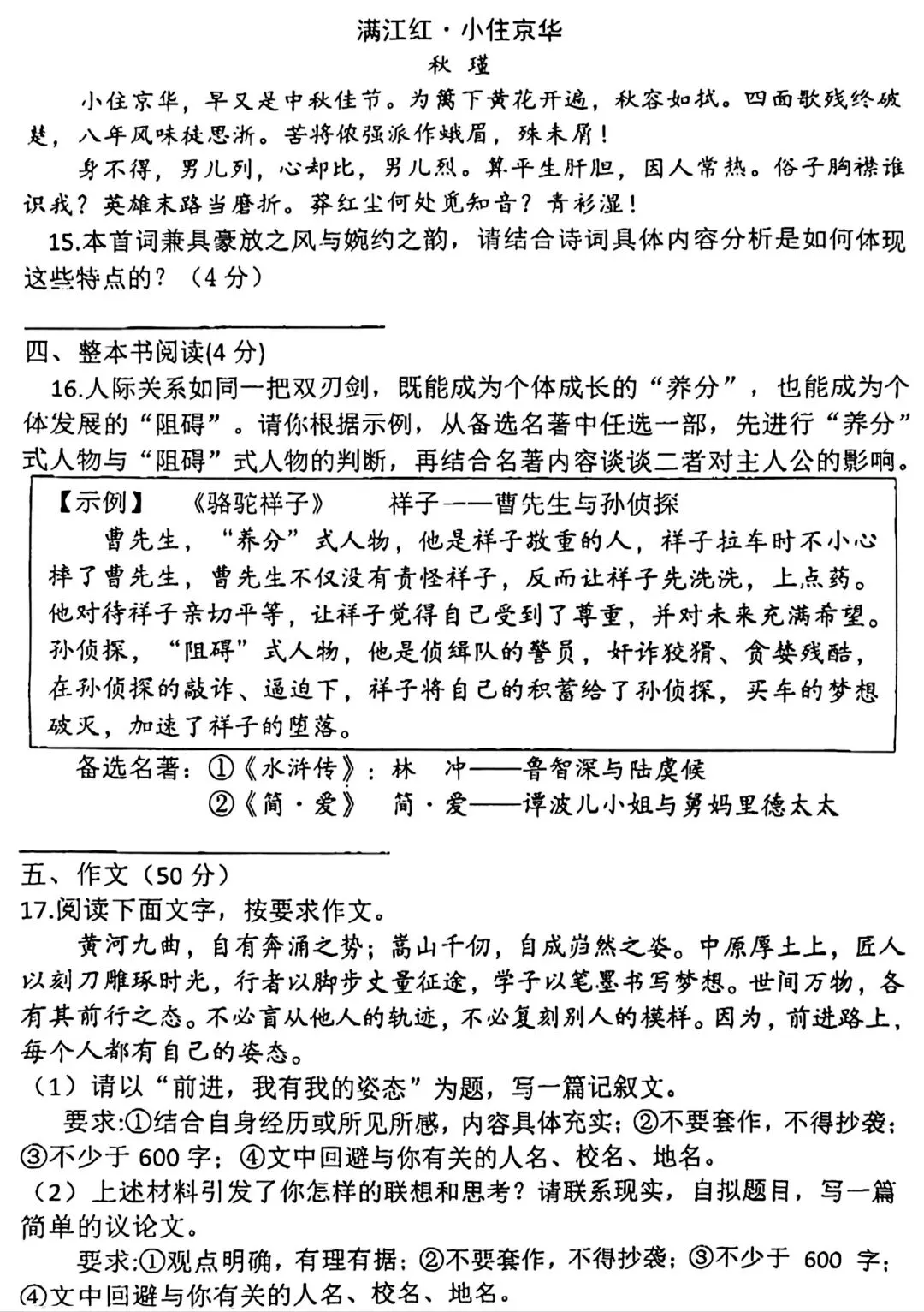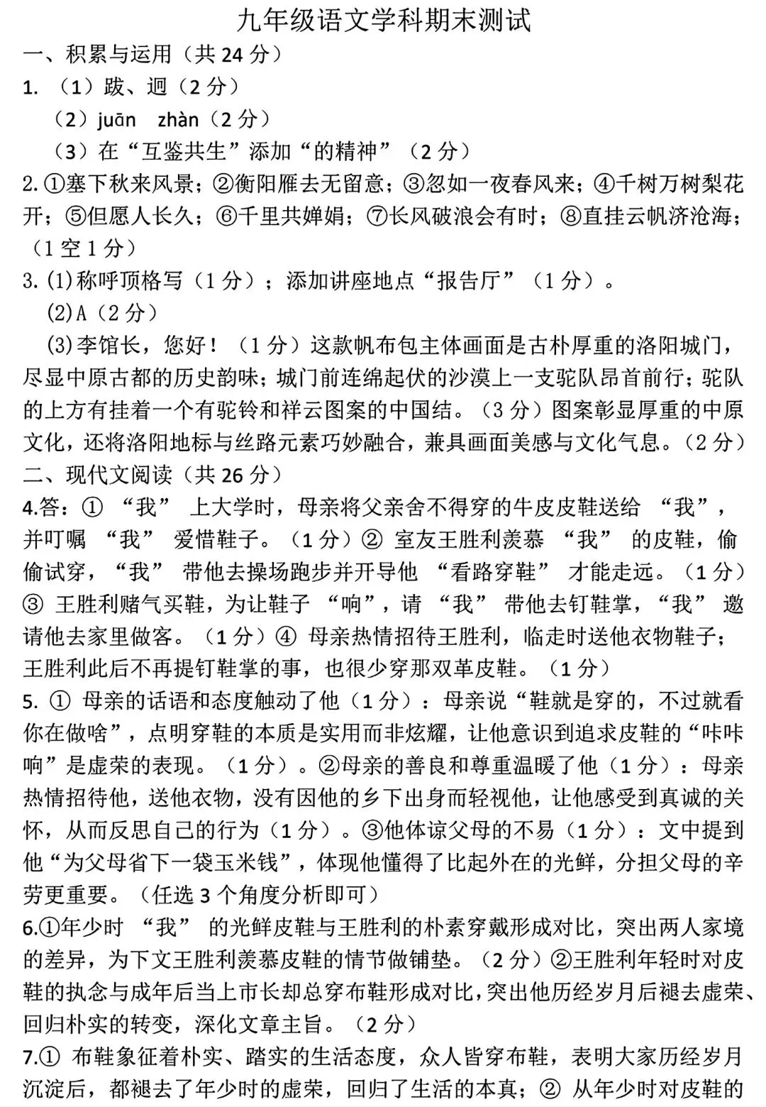 郑州外国语中学2025-2026学年九年级上学期期末考试语文试题及参考答案