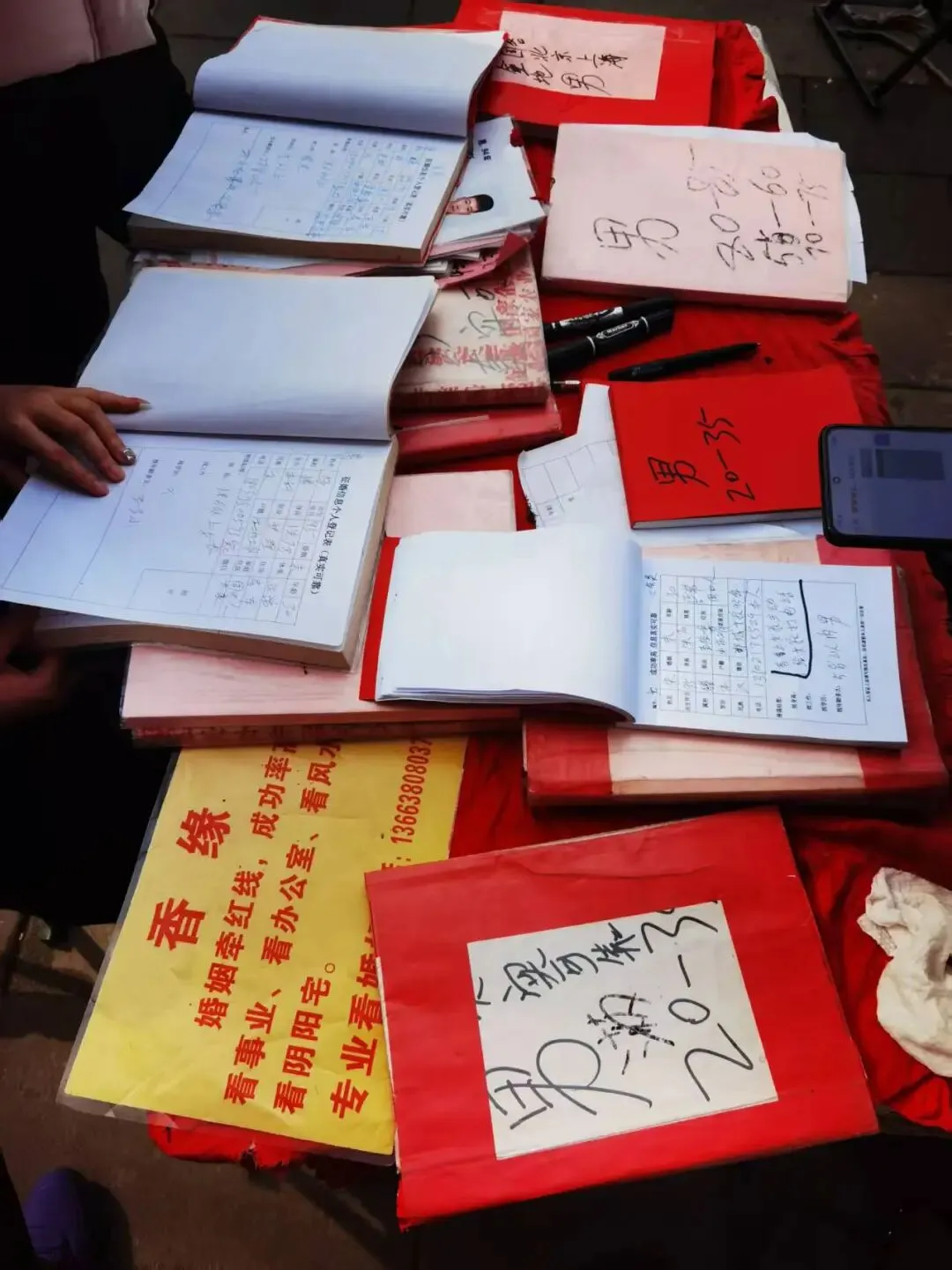 地铁口有两个娭毑摆相亲摊,居然有两个姐姐驻足咨询。两个娭毑像感情界的阎王爷,手中几大本按年龄和性别分的相亲信息册,手机里还存有各类感情资源。见我好奇,大妈问我相亲啵,我婉言谢绝,舔着脸在一旁暗中观察。大妈见我无意相亲,转而继续服务那两个姐姐,我却有一搭没一搭地瞎聊。大妈见我来了兴趣,开始拷问我:小伙子多大啊、是本地的吗、有对象吗……我说我不是本地的,在北京读大学,大妈更来劲了像过年的远房表亲刨根问底起来,我以乾坤大挪移之法将聊天对象转回了大妈身上。大妈今年六十了,牵红线,她是专业的,我合计估计也只有六十岁的大妈有这份关注世人感情生活的闲心或热心。我问出了致命的问题“大妈,您有对象吗”。大妈没有对象!我们齐声笑了起来,我说我们大学有些老教授也单身,我有机会介绍给你,大妈欣喜若狂塞给了我她的一张名片,紧接着开始夸我这个小伙子天庭饱满脸颊丰盈一定生活会很幸福,并说我现在上学没时间谈感情以后有需要一定找她,我尴尬地囫囵过去。最后,我祝她身体健康,早日找到合适的另一半。月老竟是我自己!