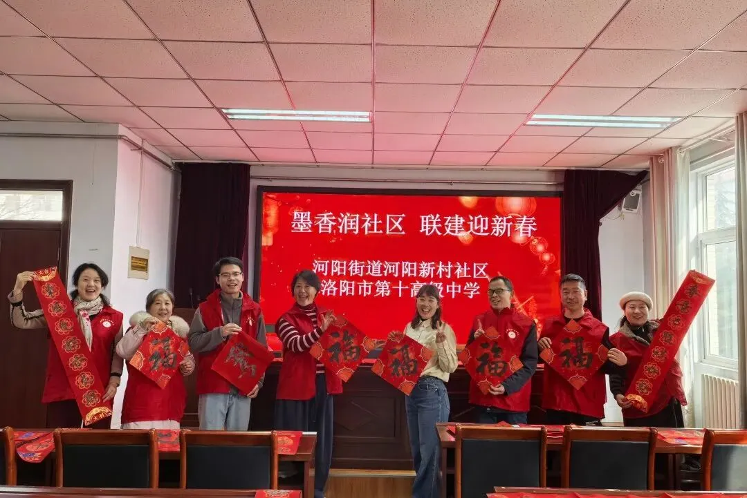 乙巳辞旧岁,丙午启新程。2026新春将至,为赓续中华优秀传统文化,传递邻里温情与新春吉兆,洛阳市第十高级中学组织教师走进河阳新村社区,开展“墨香润社区 联建迎新春”义写春联活动,以翰墨为媒,将浓浓年意与真挚祝福送至社区千家万户。
