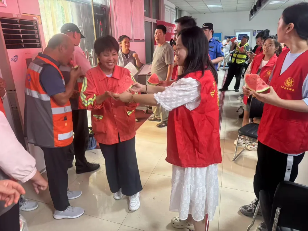 (二)打造“夏送清凉”品牌,守护高温下的劳动者。分层送暖全覆盖。开展“当一天工会驿站站长”夏日送清凉行动——向环卫、快递、城管执法队员等日间作业群体发放矿泉水、绿豆、防暑药品等物资,累计发放 140 余件,覆盖职工 30 余人次。延伸服务附加值。联合社区卫生服务中心党员医疗团队,在送清凉现场开展“高温健康课堂”,讲解防暑知识、应急处理方法,提供血压测量、健康咨询等服务,组织讲座 12 场,职工 500 余名职工受益。