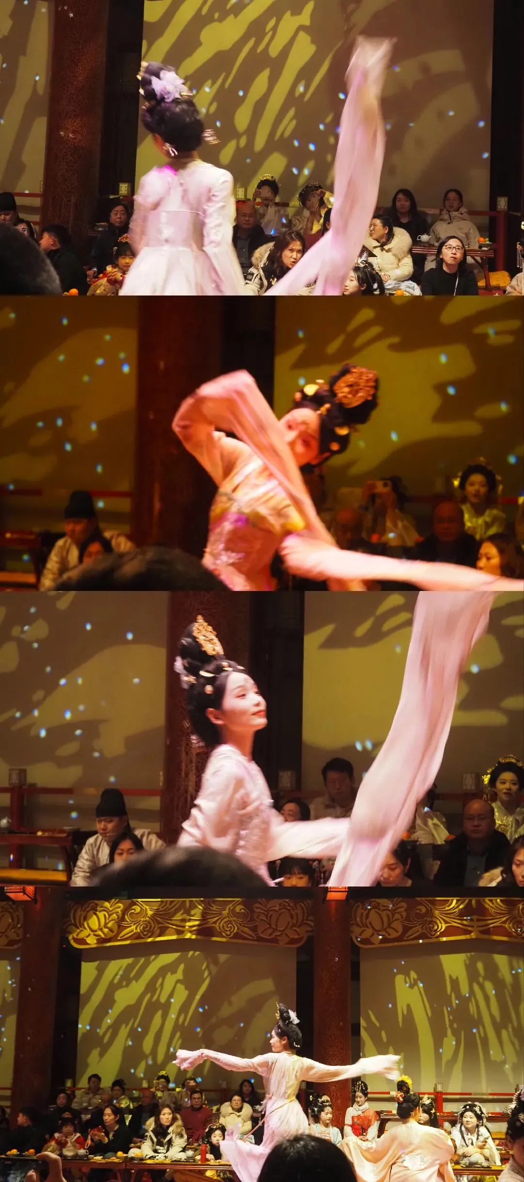 然而,应天门的表演,所谓“唐宫乐宴”者,票中毕竟包含了免费换装,不换似乎就亏了呀!于是得见爸爸不情愿才披上一件,内搭和裙襦都不要,仍旧不自在。他说,感觉像提线木偶!