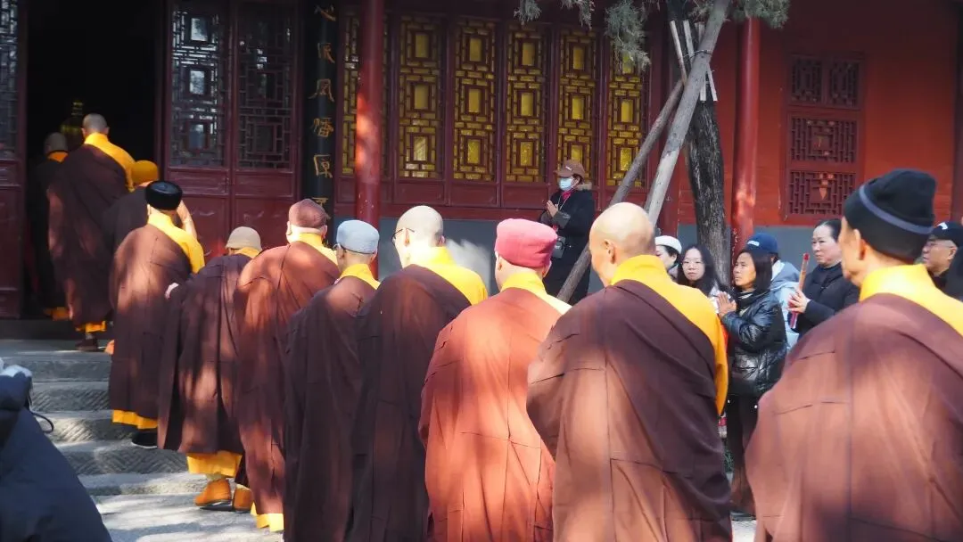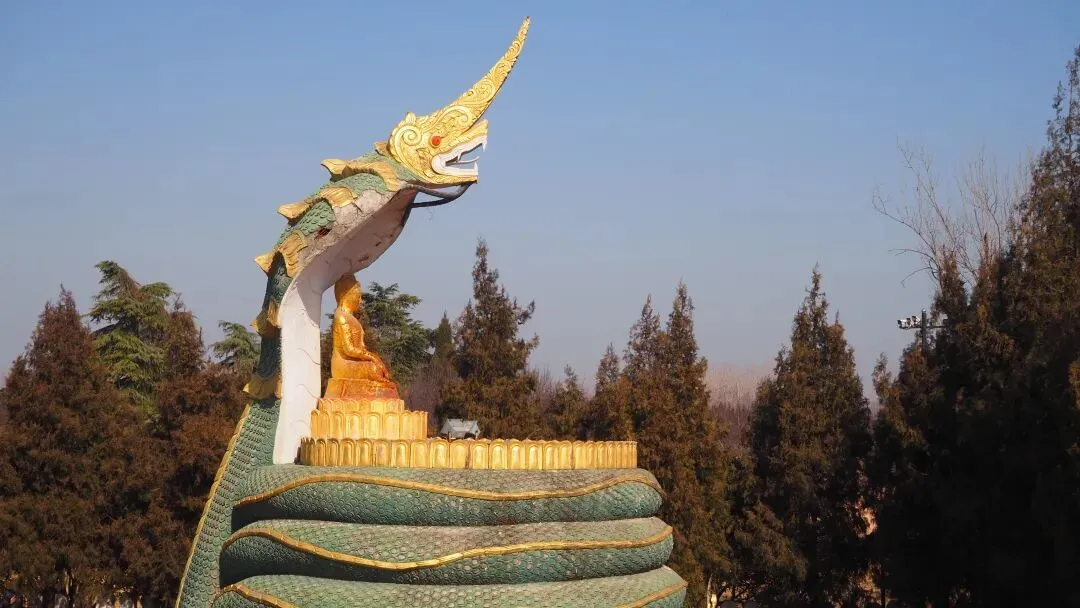 白马寺,看见了一列僧人诵着经进入,后面还跟着一些戴帽子的女性。寺内有泰国、缅甸、印度风格的佛庙建筑,很新鲜的体验。