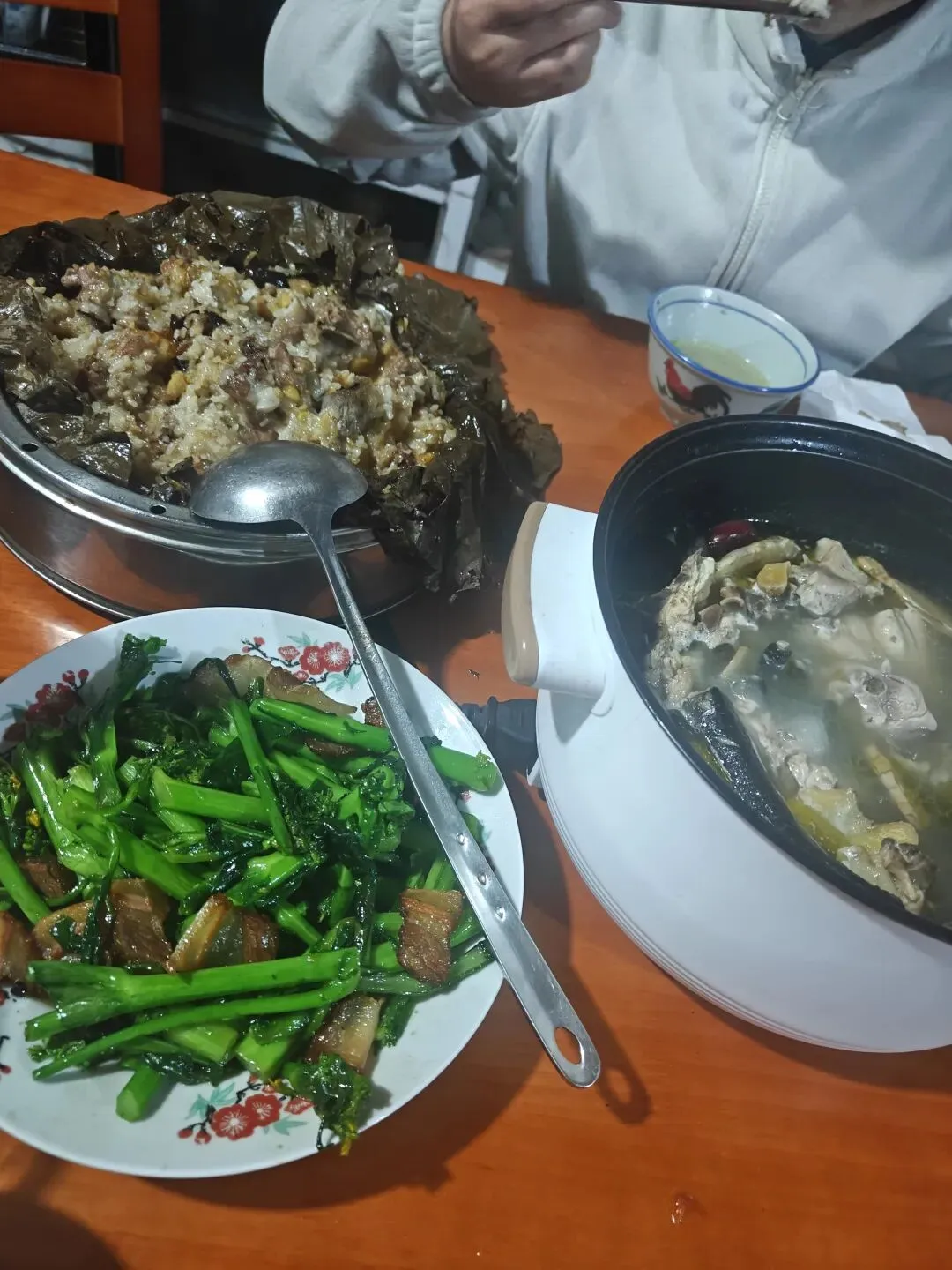 到家后,外婆给我们准备了土鸡汤、荷叶饭,里边的板栗孩子特别喜欢吃,妈妈还记得我以前可喜欢吃菜根,所以我们在吃着,她还特意帮我炒了一盘菜花。哈哈~由于太饿了,所以吃饱后才随手拍了两张照片,我和俺妞一人吃了个大鸡腿,不得不说还是自家养的鸡,这个汤才是真的鲜!今天给大家说说我们娘三一共花了多少路费?