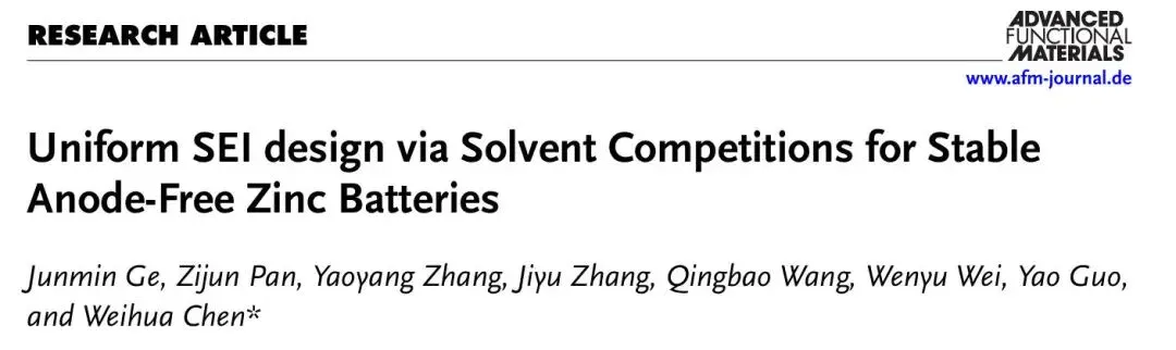 Uniform SEI design via Solvent Competitions for Stable Anode-Free Zinc Batteries, Advanced Functional Materials 2025 DOI: 10.1002/adfm.202513242