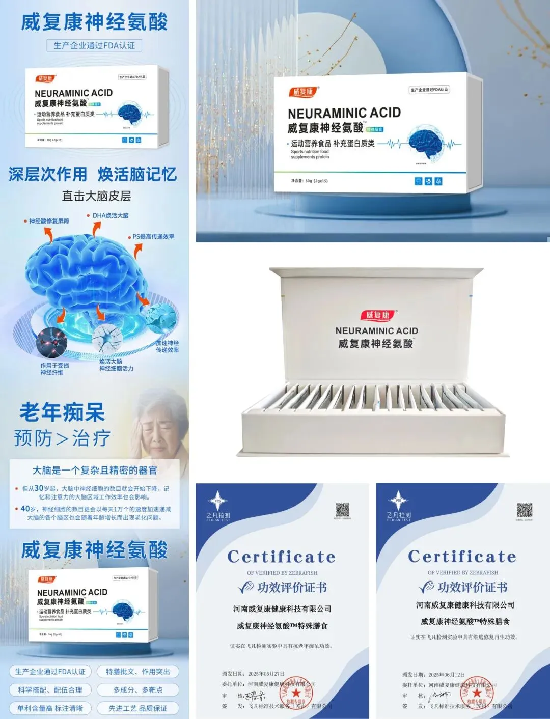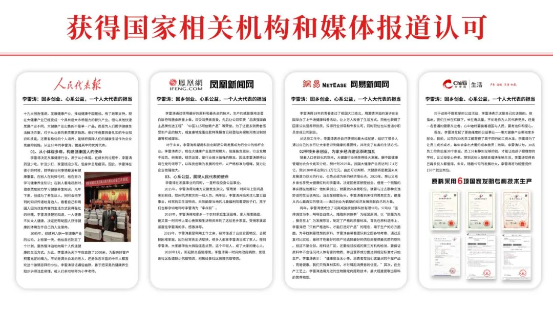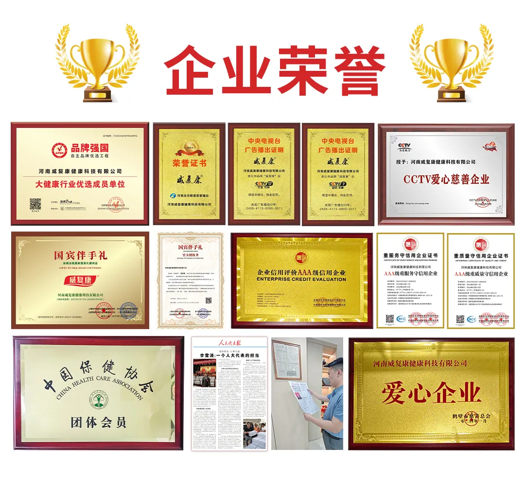 公司“威复康”品牌被评为品牌强国自主品牌优选工程大健康行业成员单位,公司创始人李雷涛由央视著名主持人海霞老师进行专访、被人民代表报、地方媒体等多家媒体进行报道,公司产品被定为“一带一路”国宾伴手礼等荣誉。