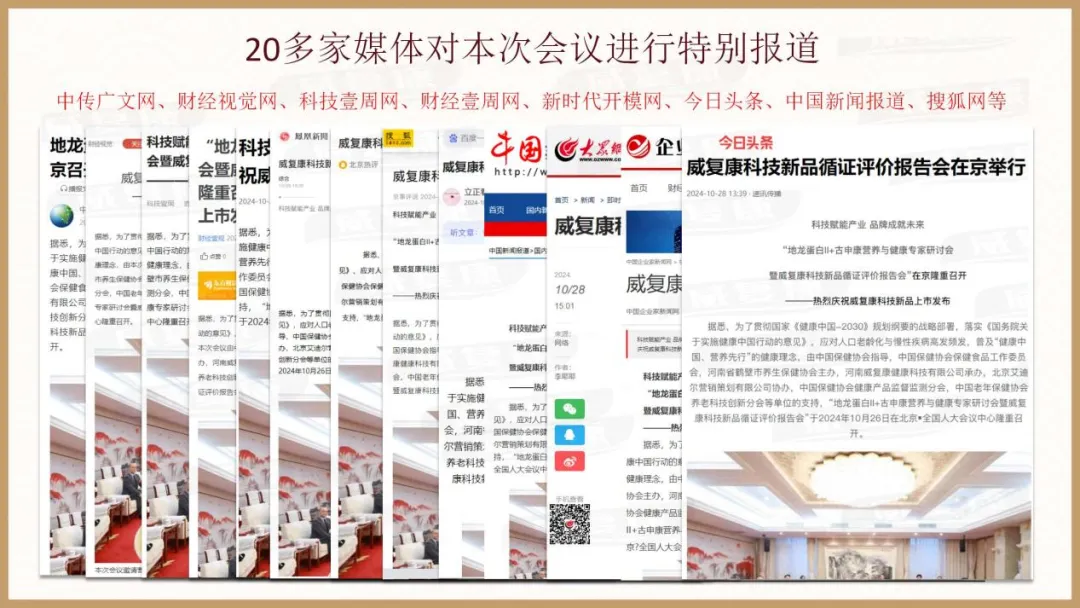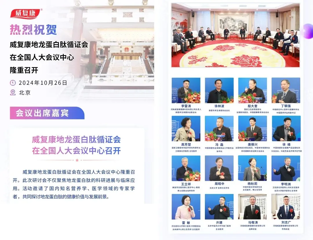 1、2024年10月26日在全国人大中心举办的威复康地龙蛋白肽循证会隆重召开