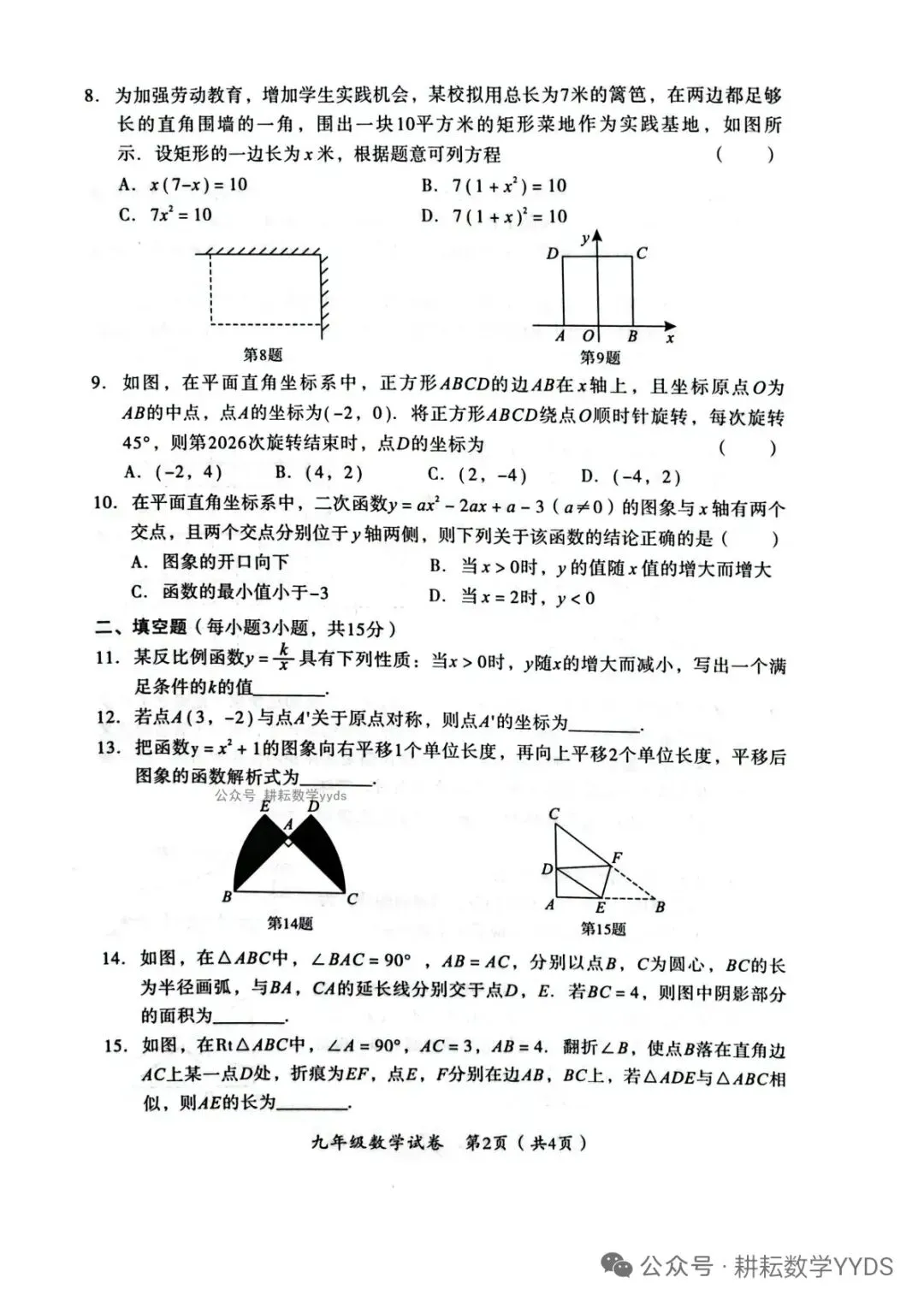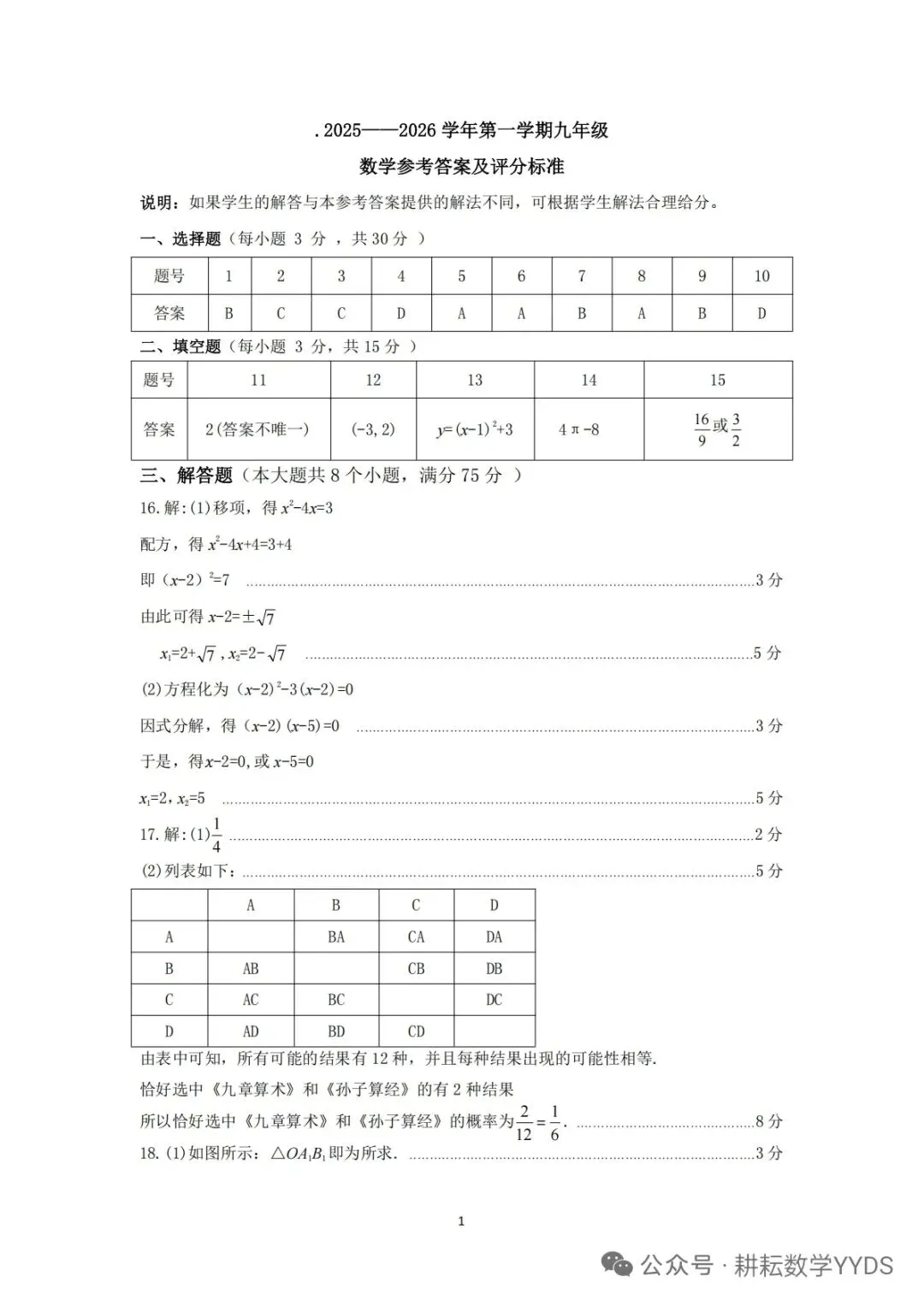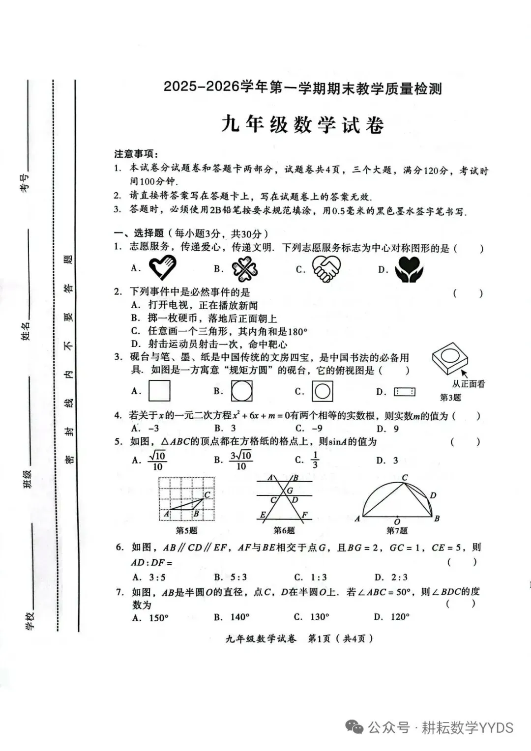 >安阳市殷都区2025-2026学年九年级第一学期数学期末教学质量检测
