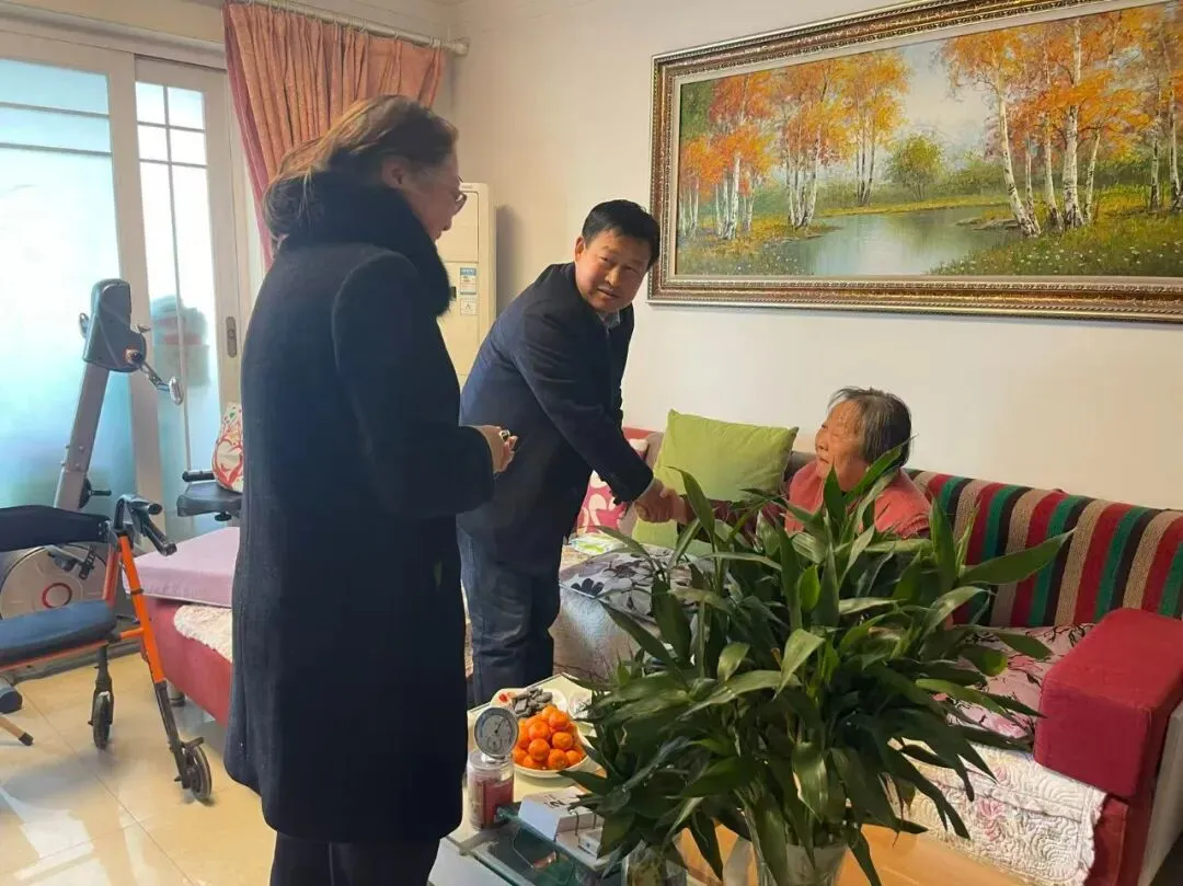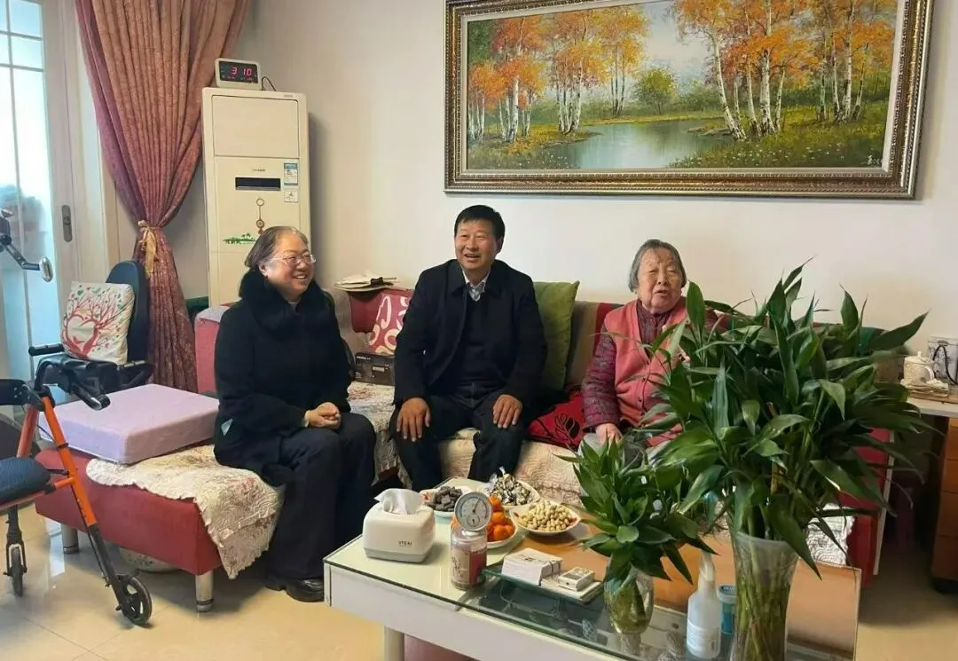 推开徐文琦老师的家门,暖意扑面而来。张新慧等人快步上前握住徐老师的手,关切地询问她的身体状况、日常起居和饮食作息,细细叮嘱她冬日天气寒冷,要注意添衣保暖,保重身体,有任何生活需求都可及时向学校反映。看到徐老师精神矍铄、思路清晰,大家由衷感到欣慰,欢声笑语瞬间填满了整个房间。