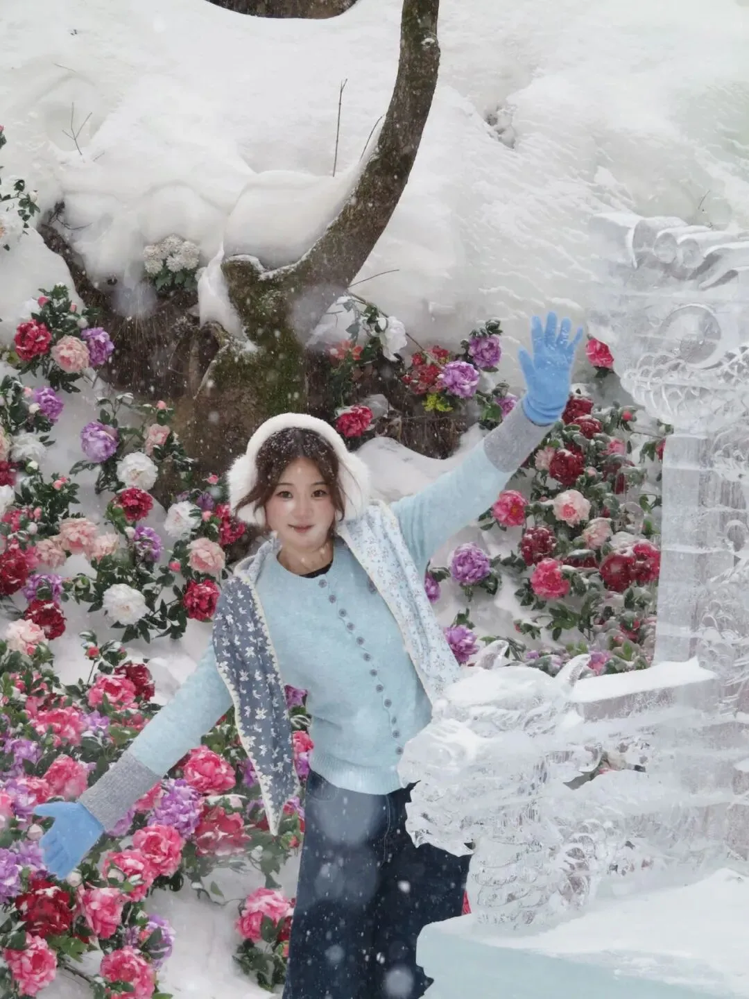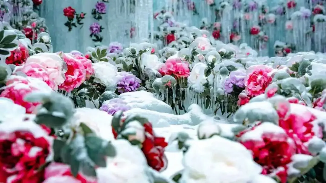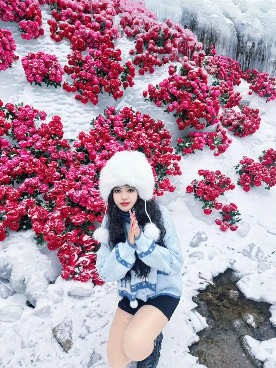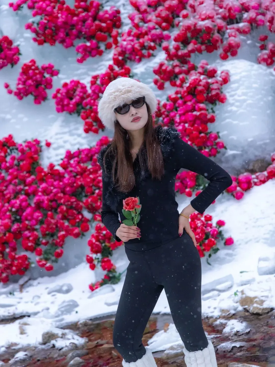 玫瑰像团小火球,在冰天雪地里燃得热烈
