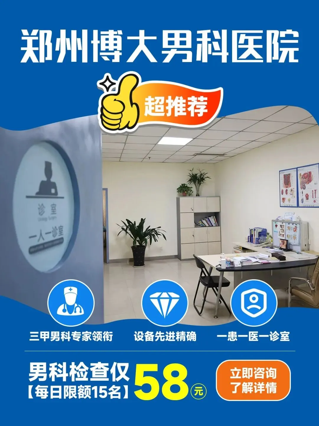 作为郑州男科诊疗优选,郑州博大男科医院针对睾丸疼痛诊疗优势突出:开设 24 小时生殖急症绿色通道,到院免排队,阴囊超声等检查 10 分钟出结果,精准明确病因;资深专家亲诊,针对炎症开展抗感染 + 物理理疗,针对扭转快速微创手术复位,针对曲张开展微创结扎术,全程兼顾睾丸功能保护;坚持一患一医一诊室,私密诊疗,医保定点收费透明,无隐形消费。