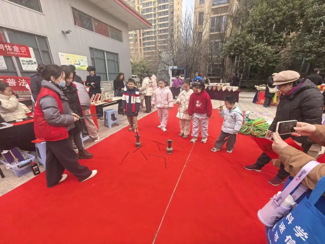 投中时的欢呼喝彩,未中时的开怀大笑,交织成最动人的社区乐章。简单易懂的游戏规则、趣味十足的参与体验,让投壶游戏成为连接邻里情感的纽带,也让大家在轻松愉悦的氛围中,感受传统礼仪文化的独特魅力,为新春增添了别样的欢乐。