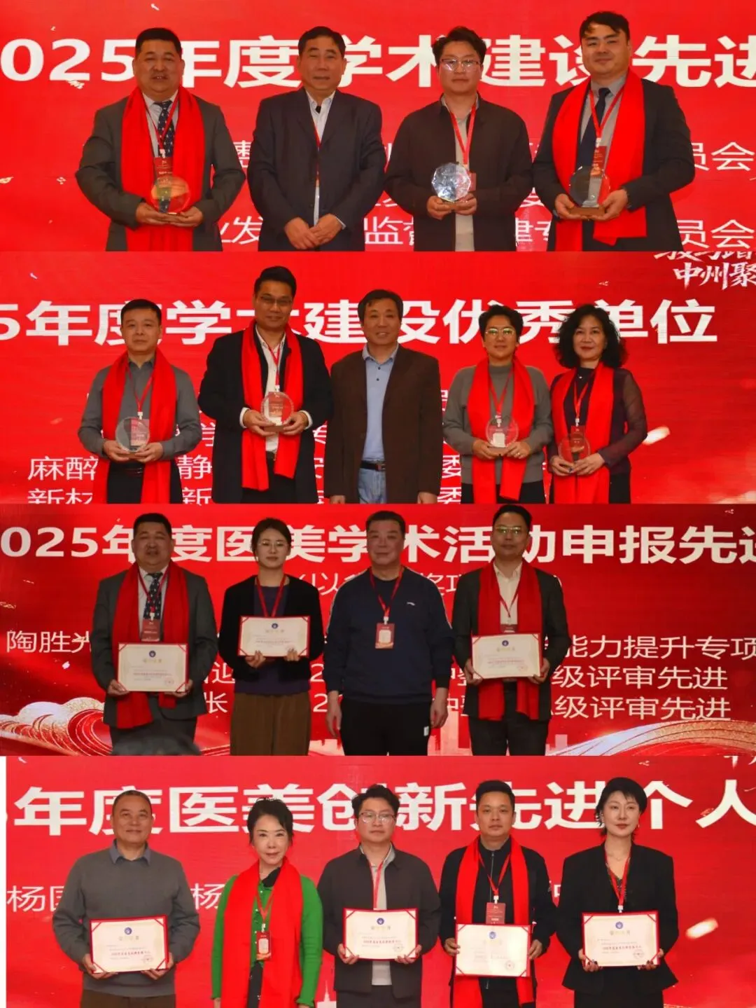 张志锋秘书长宣读了2025年做出突出贡献的单位和个人表彰文件。受奖单位和个人纷纷上台,合影留念。