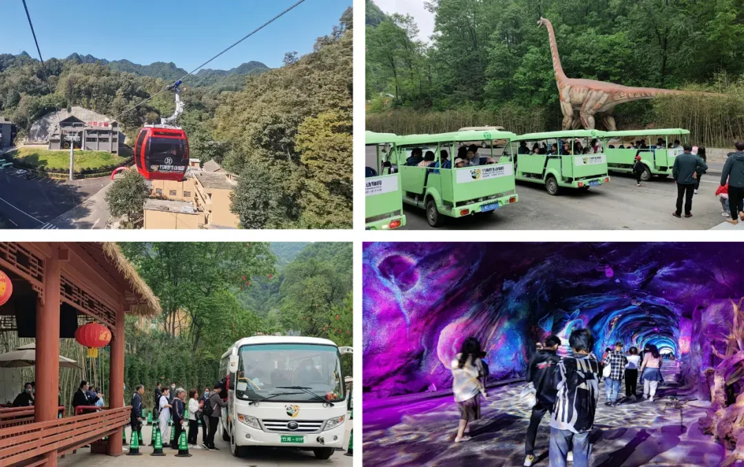 竹海野生动物园有观光车、观虎车、竹野索道、5D观光隧道四大立体交通系统,一票全含,顺滑对接,让您畅游无忧;