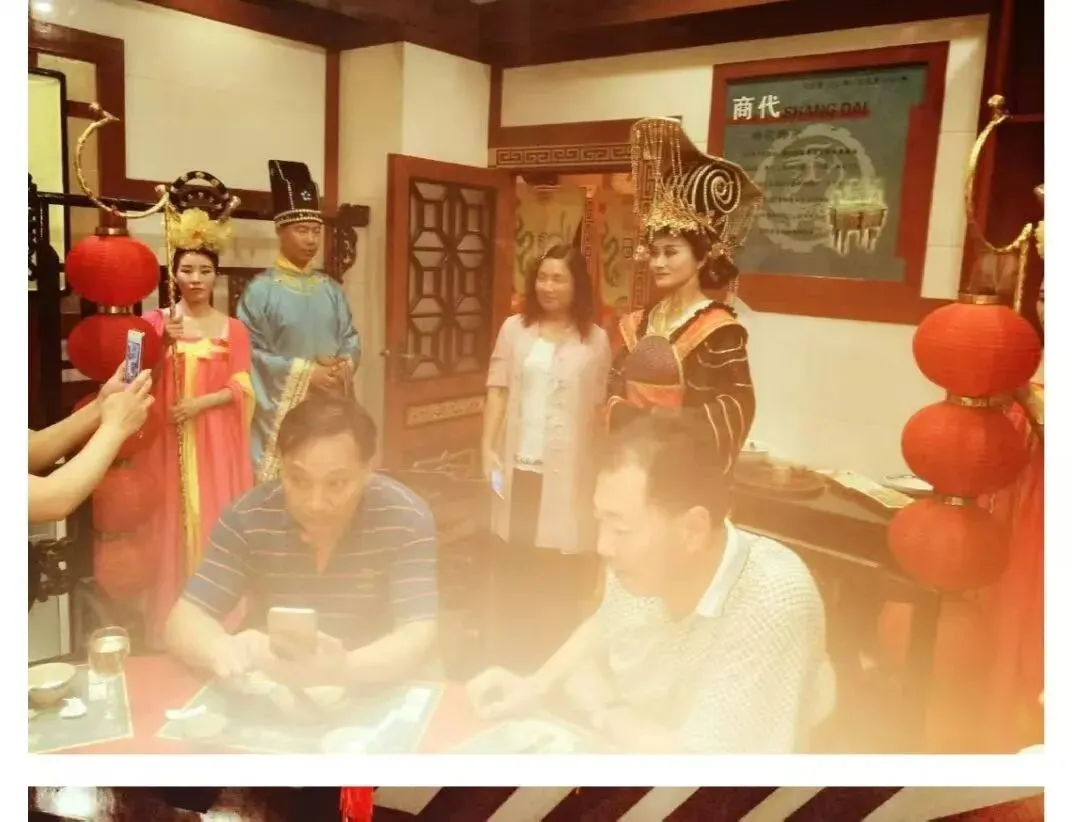 长辈们捻起一粒焦炸丸子,笑着说起上一次家族相聚的光景,晚辈们举起酒杯,分享着工作与生活的新鲜事。推杯换盏之间,滚烫的情谊顺着热菜的香气漫开,填满了厅堂的每一处角落。有人拉着穿宫廷服饰的演员合影,鎏金头饰与家常的笑脸相映成趣;有人挨坐在一起自拍,镜头定格下眼角的笑意与鬓边的华发。这些照片,后来都成了家族相册里最暖的一页。