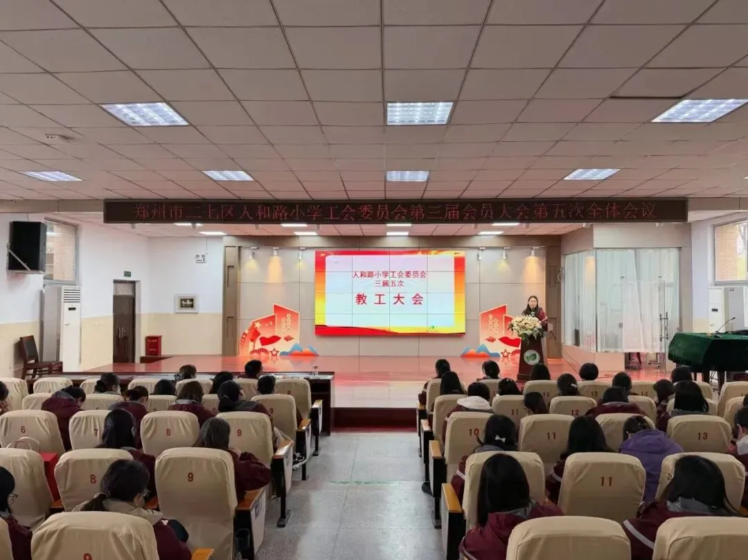 2026年2月5日上午,郑州市二七区人和路小学工会委员会第三届会员大会第五次全体会议在学校报告厅隆重闭幕。大会前夕,通过分组讨论、提案及意见建议征集等多个阶段,全体教职工凝心聚力、共商大计,为学校高质量发展积极贡献智慧和力量。