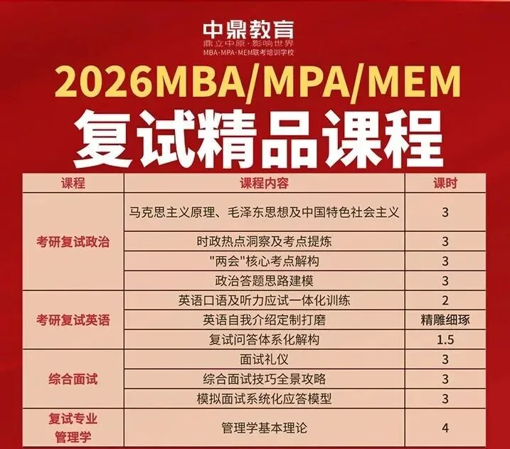 中鼎考研深耕考研复试辅导多年,熟悉各院校复试流程和考核重点,拥有一支由行业资深讲师组成的辅导团队,为考生提供专属备考计划、全真模拟面试、复试礼仪指导、调剂信息精准匹配等一站式复试服务,从笔试到面试,从备考到调剂,全程保驾护航,帮你最大化提升复试通过率,圆你考研上岸梦!✅ 精准靶向:依据各大院校高频考点与最新时政动态,深度梳理理论与热点模块,告别盲目复习。✅ 技巧赋能:传授快速破题思路、结构化作答模板与面试表达技巧,全面提升应试能力。✅ 实战模拟:提供全真面试模拟,提前适应考场氛围,稳定心态。✅ 省时高效:精准提炼考点,直击要害,用最少时间获得最大提升。