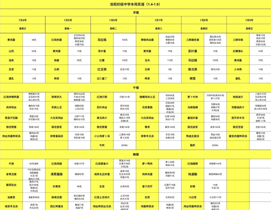 >洛阳初级中学|本周菜单(1.4-1.9)