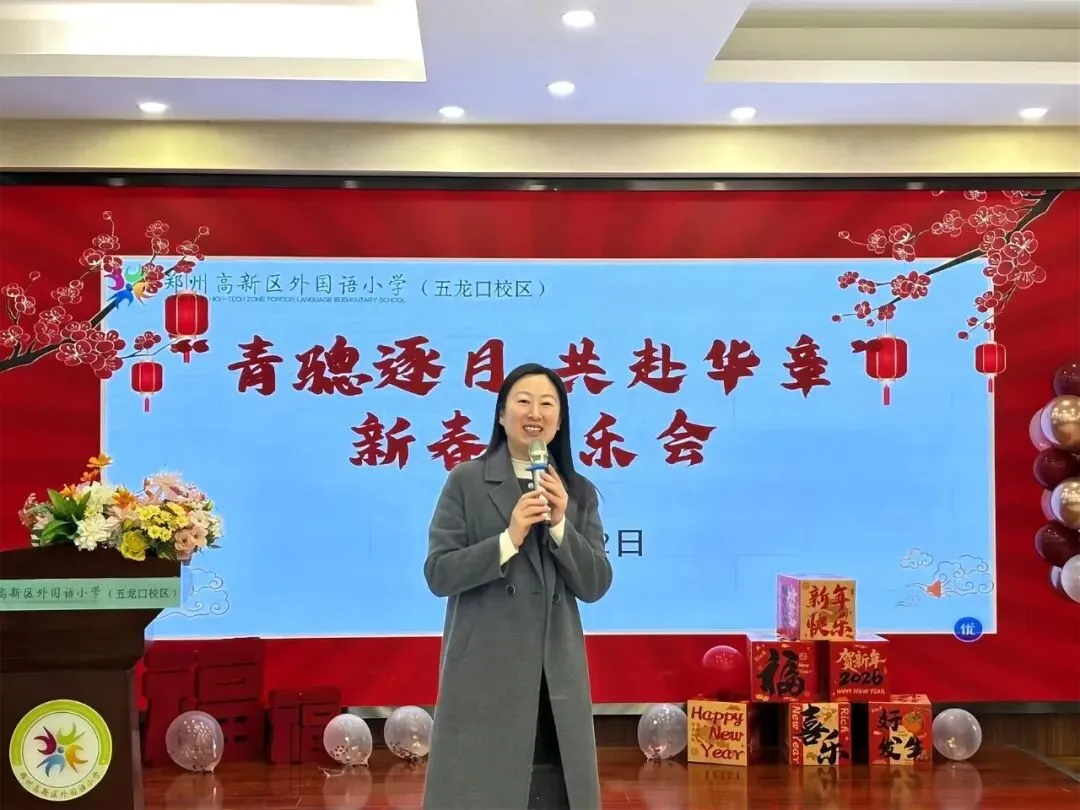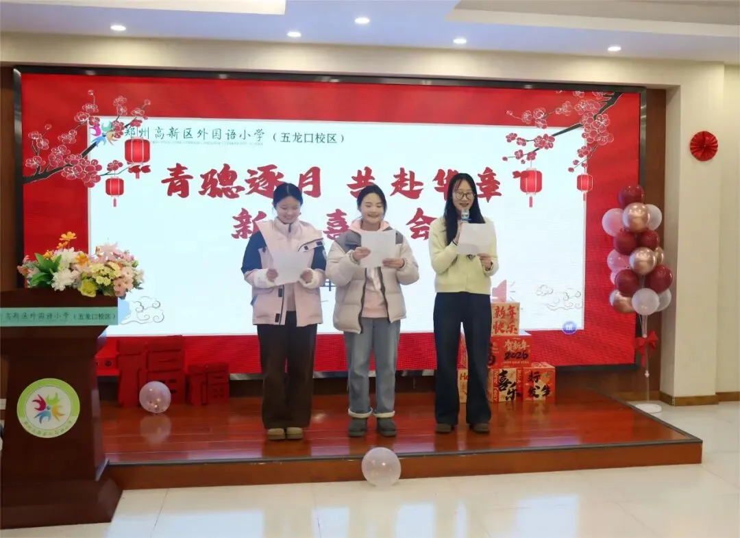 为总结过往耕耘硕果,开启新年奋进征程,郑州高新区外国语小学五龙口校区于2026年2月1日—2月3日举行期末总结大会、“青骢逐月 共赴华章”新春喜乐会,全体教职工欢聚一堂,在回望中聚力,在欢歌中迎新。