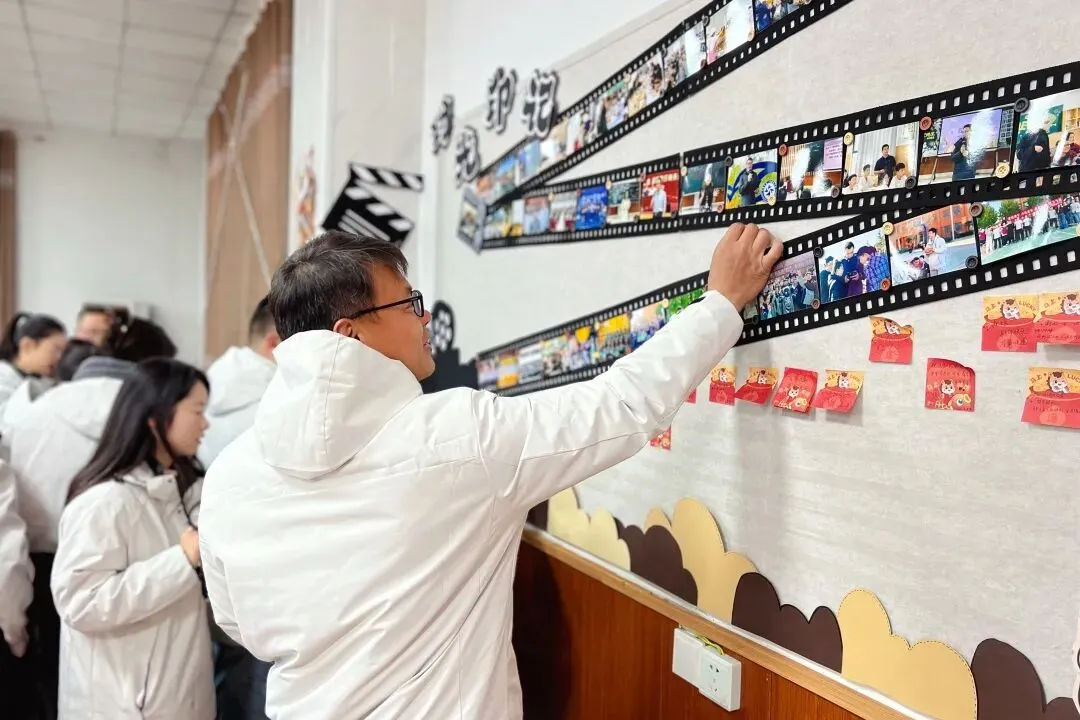 大会伊始,一场充满仪式感的沉浸式入场,瞬间拉满温情氛围。现场精心布置的照片墙,定格了一学期来教职工们并肩奋斗、深耕育人的珍贵瞬间——课堂上的谆谆教诲、活动中的全力以赴、教研时的思维碰撞,每一张照片都承载着专属我们的教育记忆。