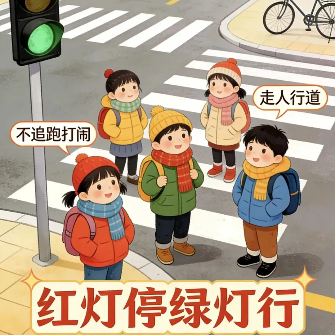 1.教育孩子外出时严格遵守交通规则,过马路走斑马线、天桥或地下通道;不闯红灯,不在道路上嬉戏打闹,不突然横穿马路,牢记“一停、二看、三通过”。
