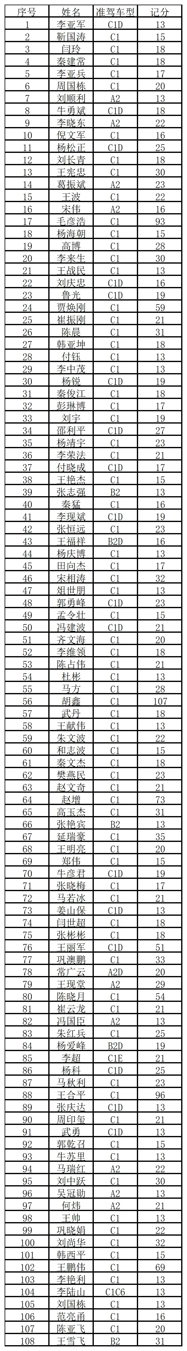 为督促相关驾驶人尽快接受处理,绷紧交通安全弦,安阳交警现对以下108名记满12分仍未参加学习考试的驾驶人进行曝光: