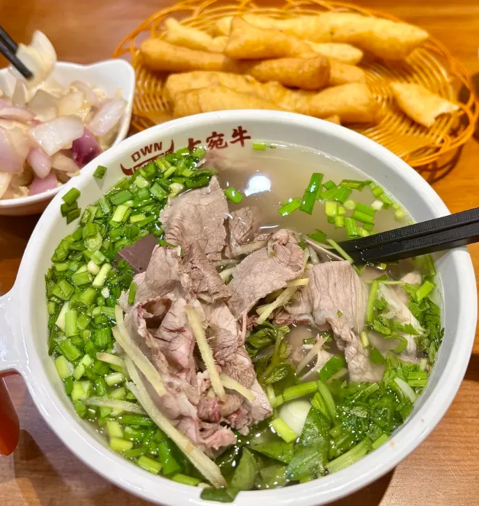 🥣 南阳牛肉汤:这汤的魂,全在熬。牛骨敲断,大火滚煮一夜,把骨髓里的油都逼出来,汤色得是奶白的。碗底铺上切得薄如蝉翼的牛肉片,滚烫的汤勺高高举起,“哗啦”冲下去,肉片瞬间烫熟。最后必须淋上一勺羊油炸过的红辣椒,撒把香菜。喝一口,那是从喉咙暖到胃里的踏实。