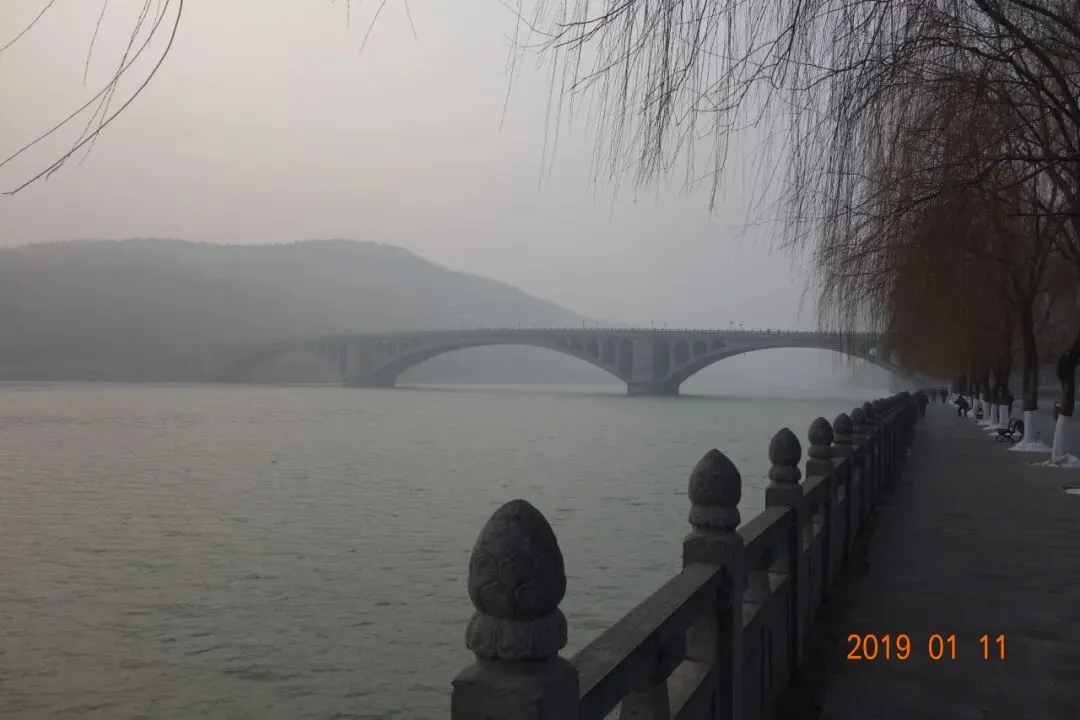 初冬的早晨,踏着晨曦的薄雾,漫步在伊河两岸,没有人从众,信步游览。
