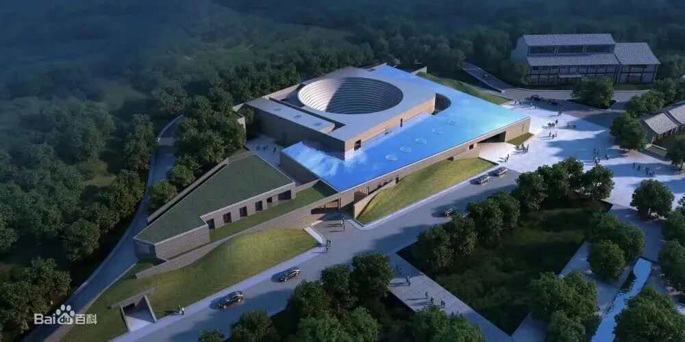 龙门博物馆位于龙门石窟风景区北入口处,外表看不显山不露水,进去后却别有洞天。整个建筑构思巧妙,宛如一个大漏斗,充分利用了自然光源。地上地下各两层,因为拍不出全貌,回来一百度,才知道这个博物馆是德国人设计的,建设花费了2亿~3亿元,是2000年龙门石窟申请世界文化遗产时的配套设施。套用百度百科的一张效果图吧: