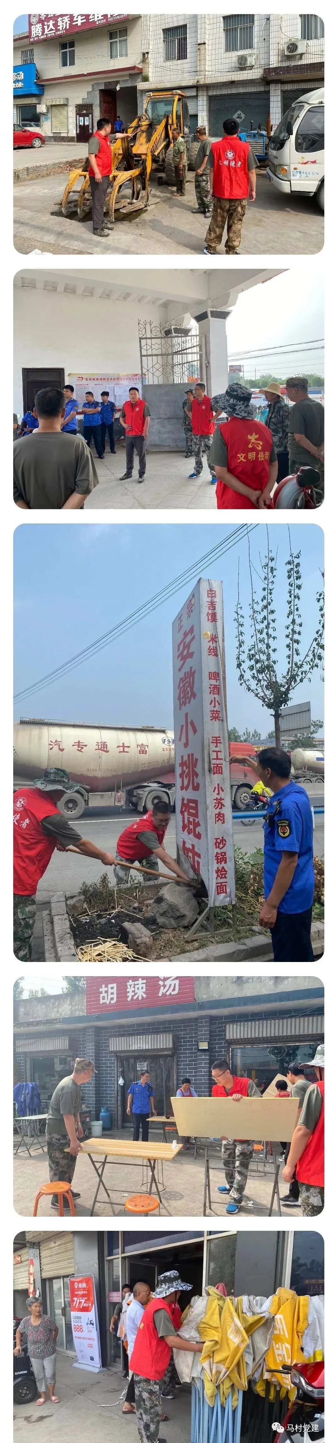 7月29日上午,炎炎烈日下,在安阳城十字路口、南水北调桥上有这么一群身影……他们身穿迷彩服、披着红马甲、胸前佩戴闪闪党员徽章,经受着烈日的“烤验”……他们三五成群手拿着扫帚、簸箕、铁锹等工具,有的在清理道路两旁的的废弃物,有的在帮助周边商店搬抬占道经营的桌椅板凳,有的清理违规广告牌,有的铲除石堆杂草……汗水浸透了他们的衣襟,他们却时刻绽放着笑颜。