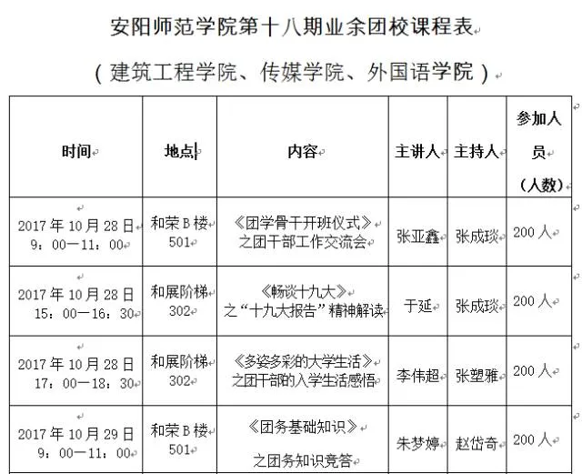 外国语学院、建筑工程学院和传媒学院合办的安阳师范学院第18期业余团学骨干培训班开课啦。大家可以关注一下这个内容喔。让我们一起来看一下 大家领略团学精神,认真聆听习近平总书记讲话时的模样吧!
