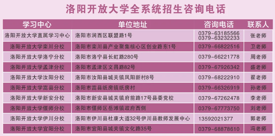 想要了解更多招生信息,欢迎关注“洛阳开放大学”微信公众号~