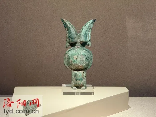 “这件西周铜当卢中间为圆形泡,上端尖角,下端长方形泡,看上去像一个圆目炯炯,尖耳挺立的小人儿,实际上,它是古人在马头上安装的饰品。”洛阳博物馆展览研究部主任黄超介绍,当卢是古代系于马匹头颅正中央的饰件,通常覆盖于马额中央略上方的位置,兼具防护与装饰功能,从而凸显出马主人身份地位的高贵。