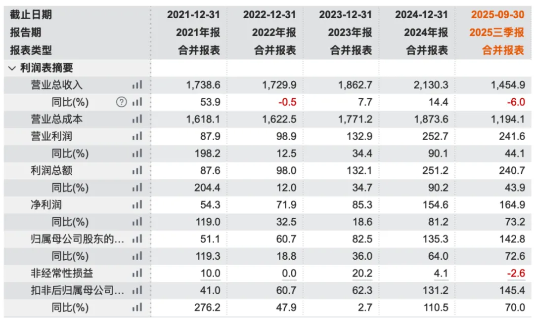 2025年前三季度,洛阳钼业主要产品铜产量为54.3万吨,同比增长14.14%;钴8.8万吨,同比增长3.84%。